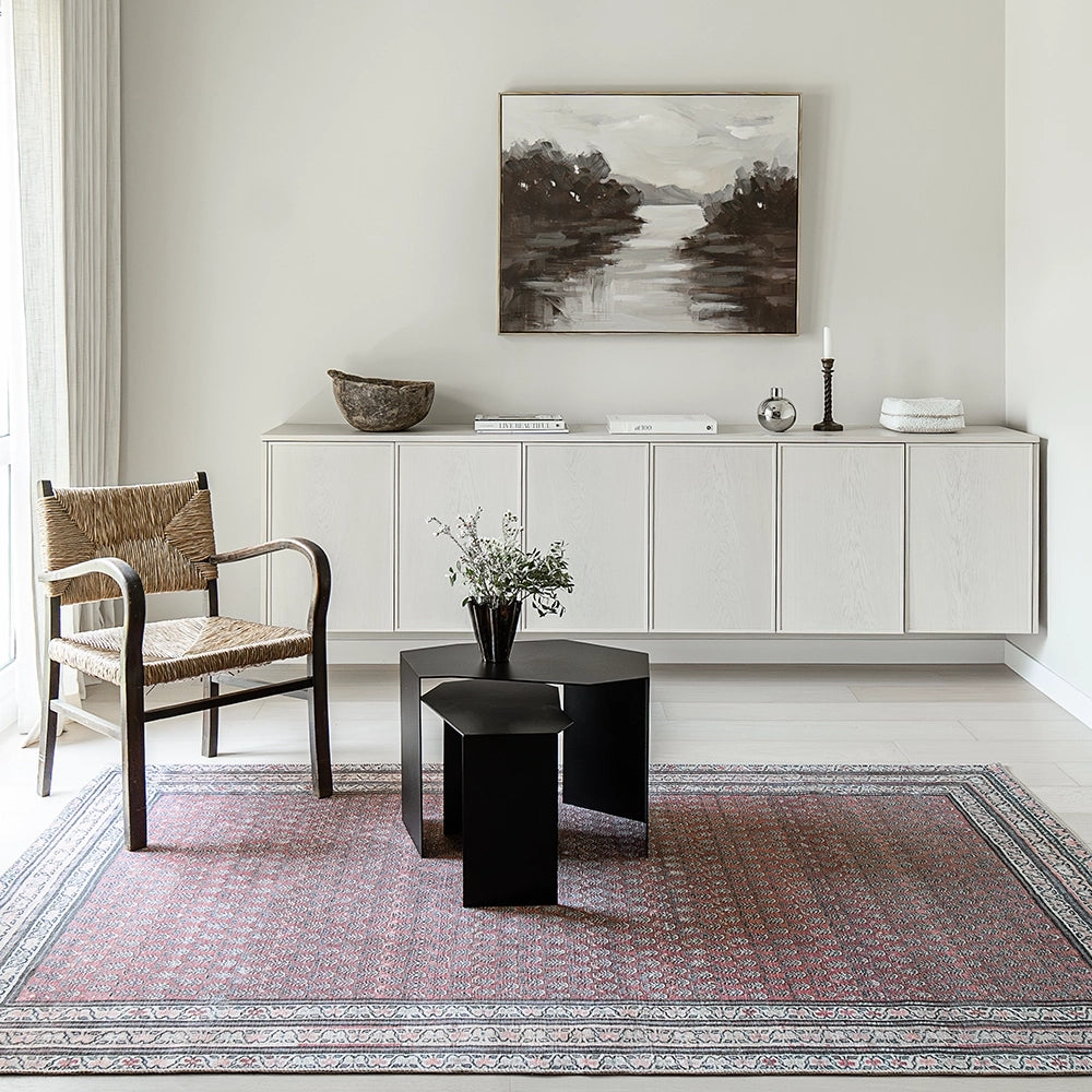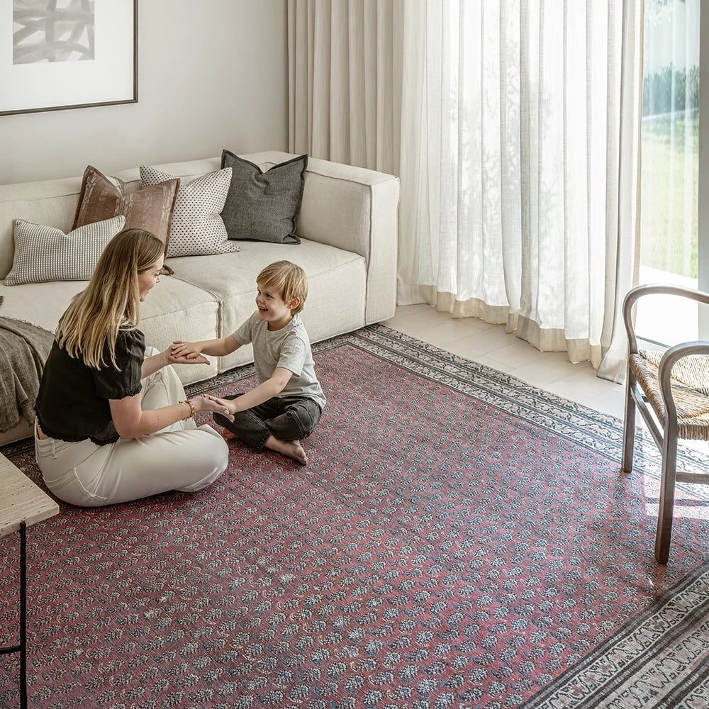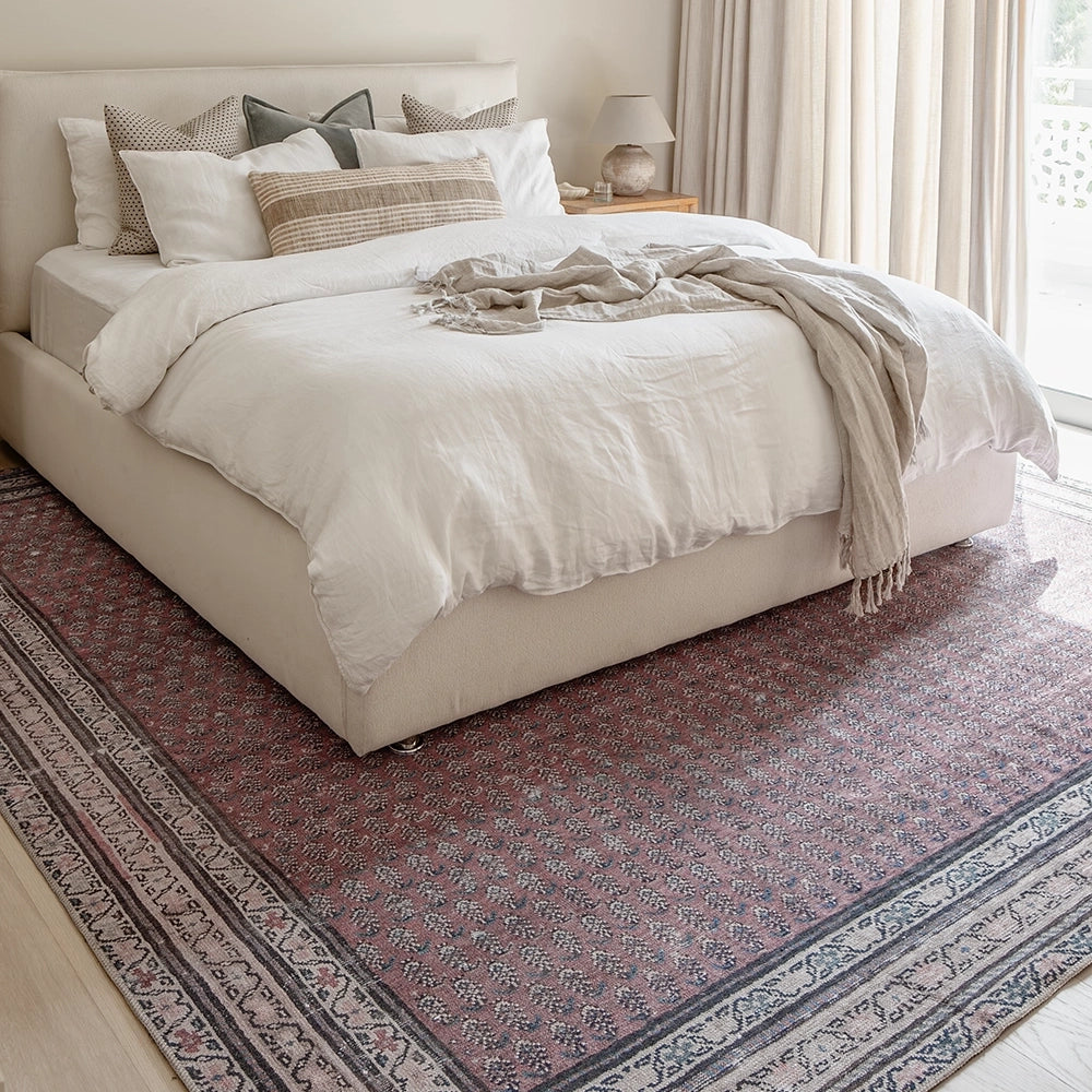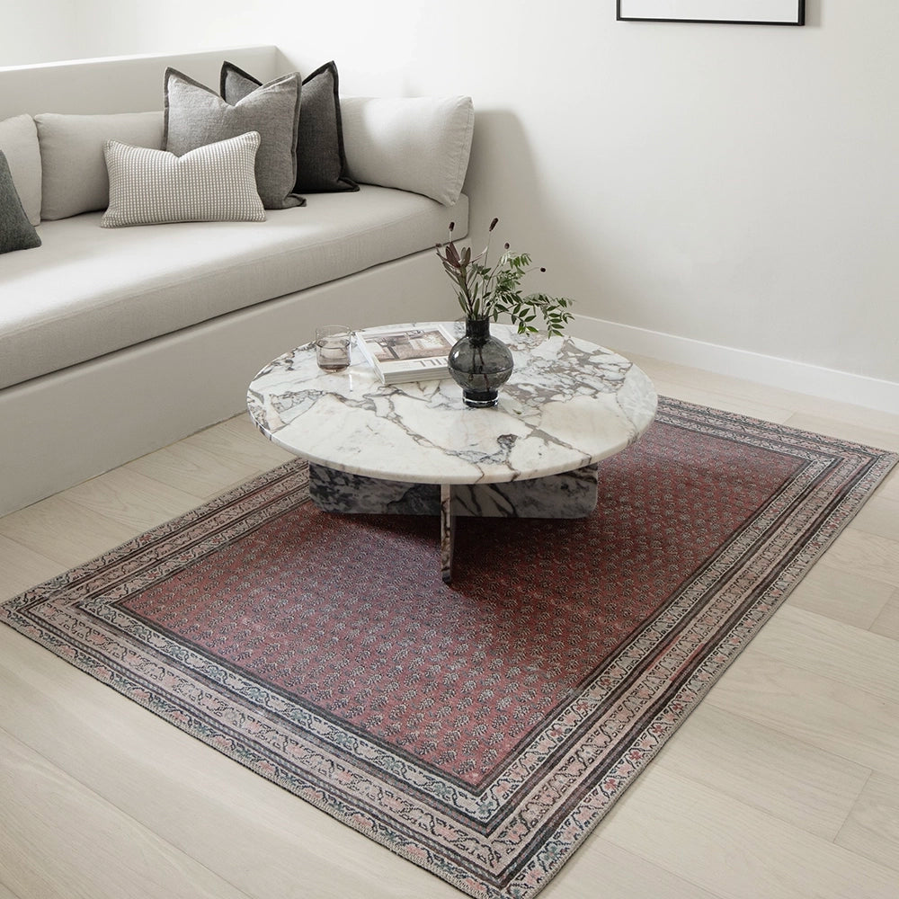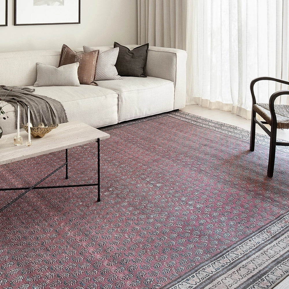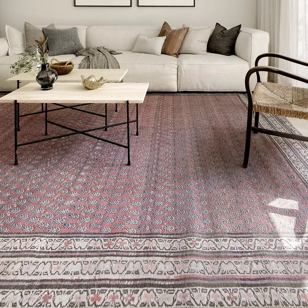 بتصميمها الكلاسيكي بنقشة البيزلي في لوحة ألوان متجددة، تمثل هذه السجادة باللون الأحمر المائل للرمادي مزيجًا راقيًا من الطراز العتيق واللمسة العصرية. تضيف السجادة لمسة من الدفء لأي غرفة في منزلك.
