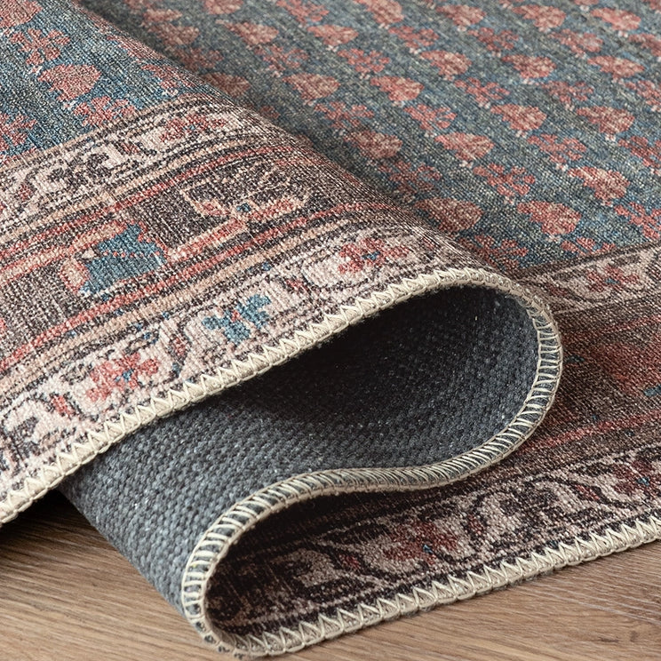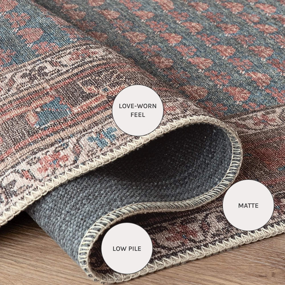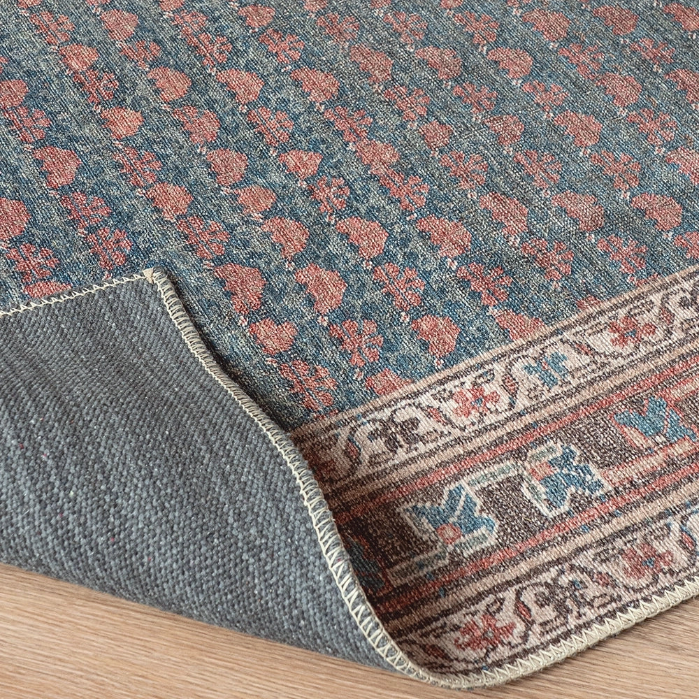 سجادة بنقش تقليدي باللون الأزرق الصخري والأحمر الطوبي