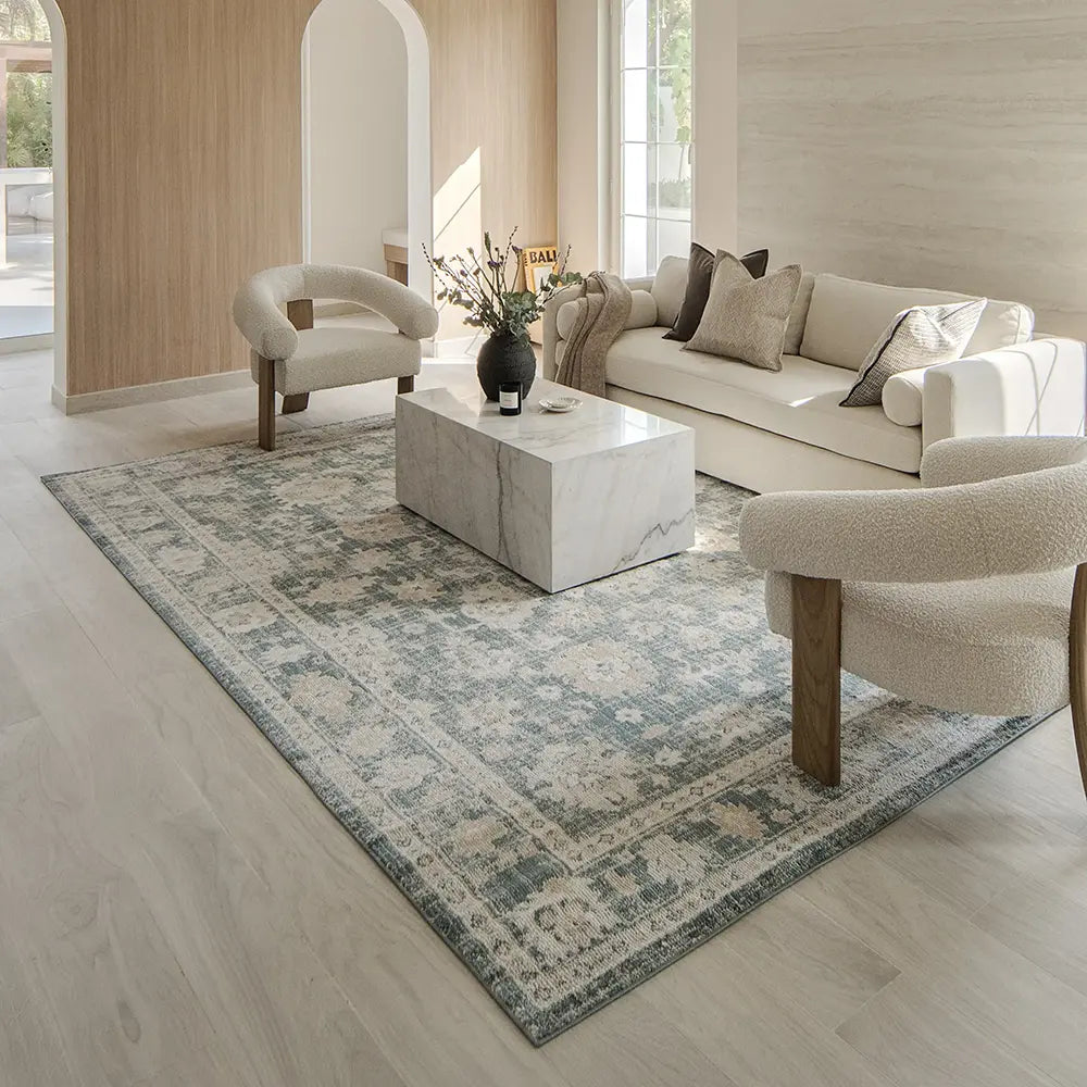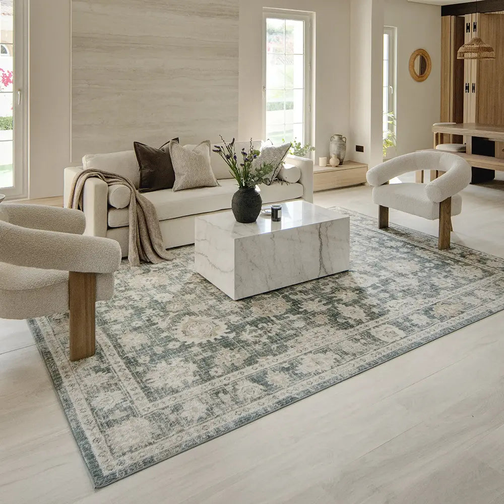 باللون الأزرق الدنيم الداكن ودرجات البيج، تتمتع هذه السجادة ذات الطراز العتيق بمظهر مألوف ومحبوب يتناغم مع الديكورات التقليدية والعصرية على حد سواء. استمتع بسحر الطراز القديم مع هذه السجادة المزخرفة.