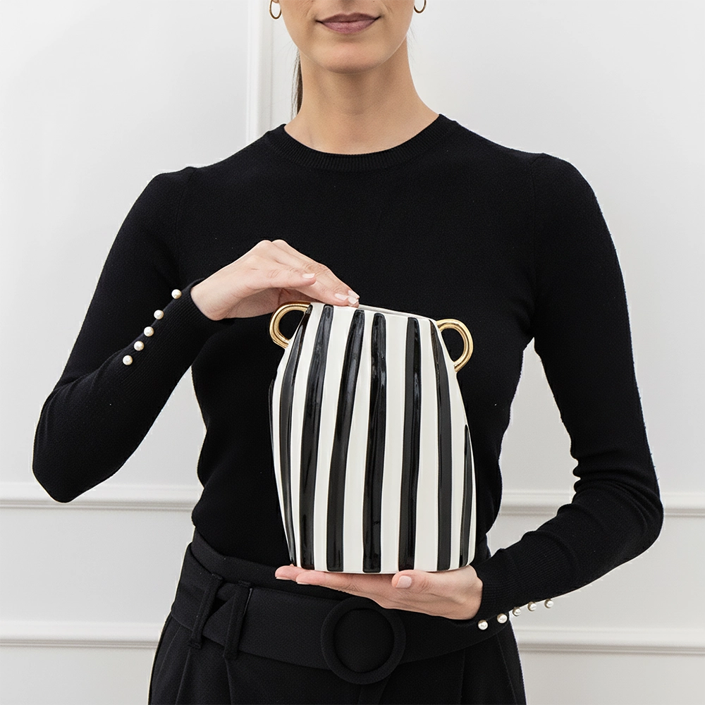التصميم: زهرية غير متماثلة بخطوط متعرجة ومقابض بلون ذهبي