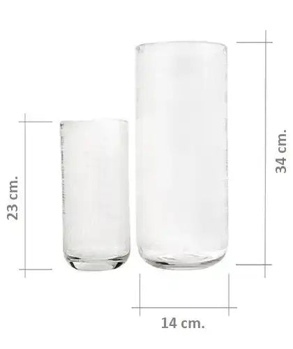 التصميم: مزهريتان من الزجاج، بارتفاع 34 سم وبارتفاع 23 سم