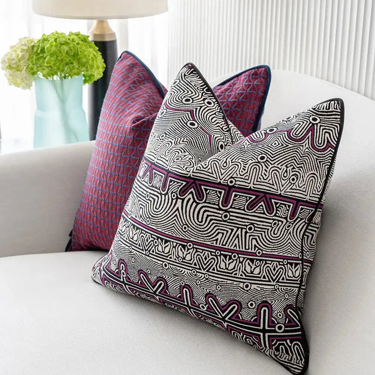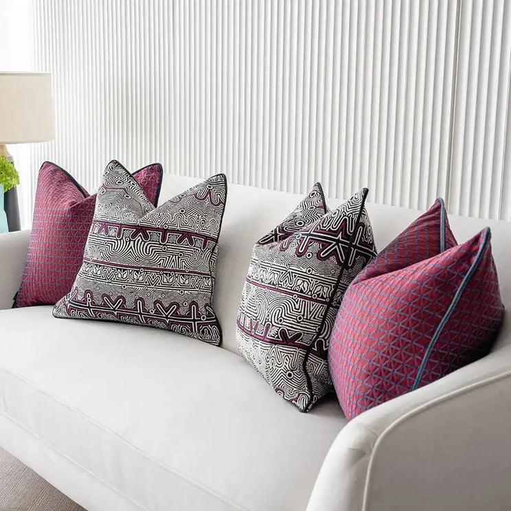 التصميم: وسادتان هندسيتان ووسادتان بنمط قبلي
