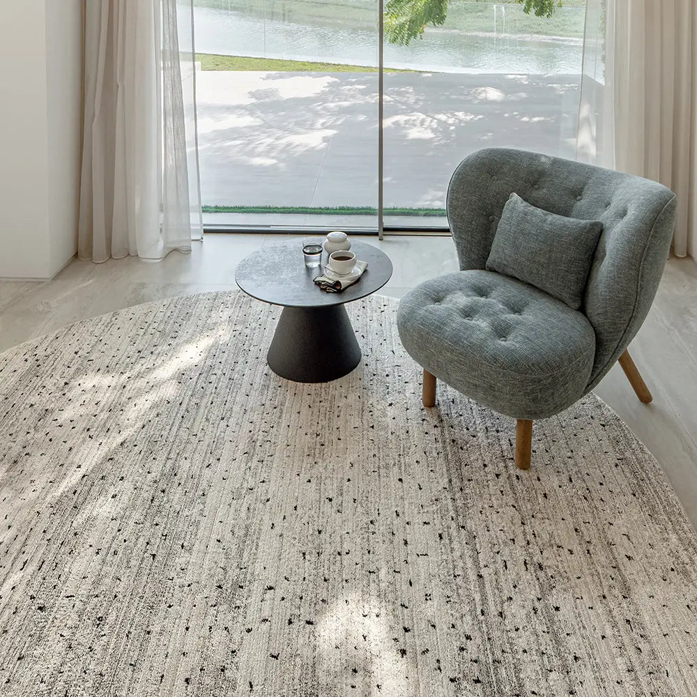 تضفي لوحة الألوان اللطيفة على هذه السجادة باللونين البيج والأسود إحساسا بالزن
