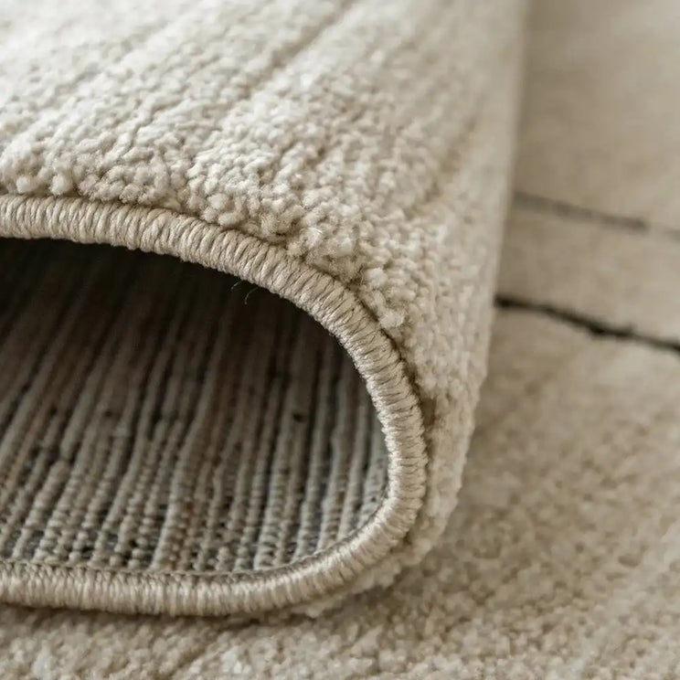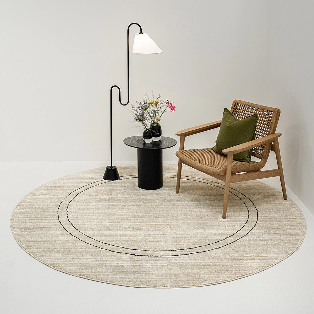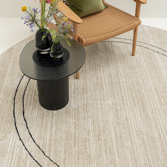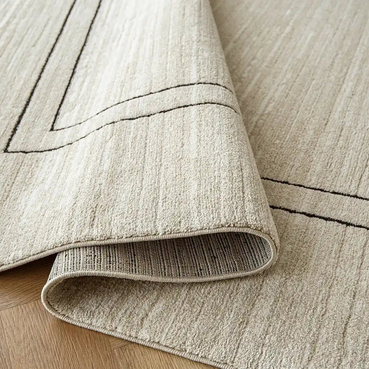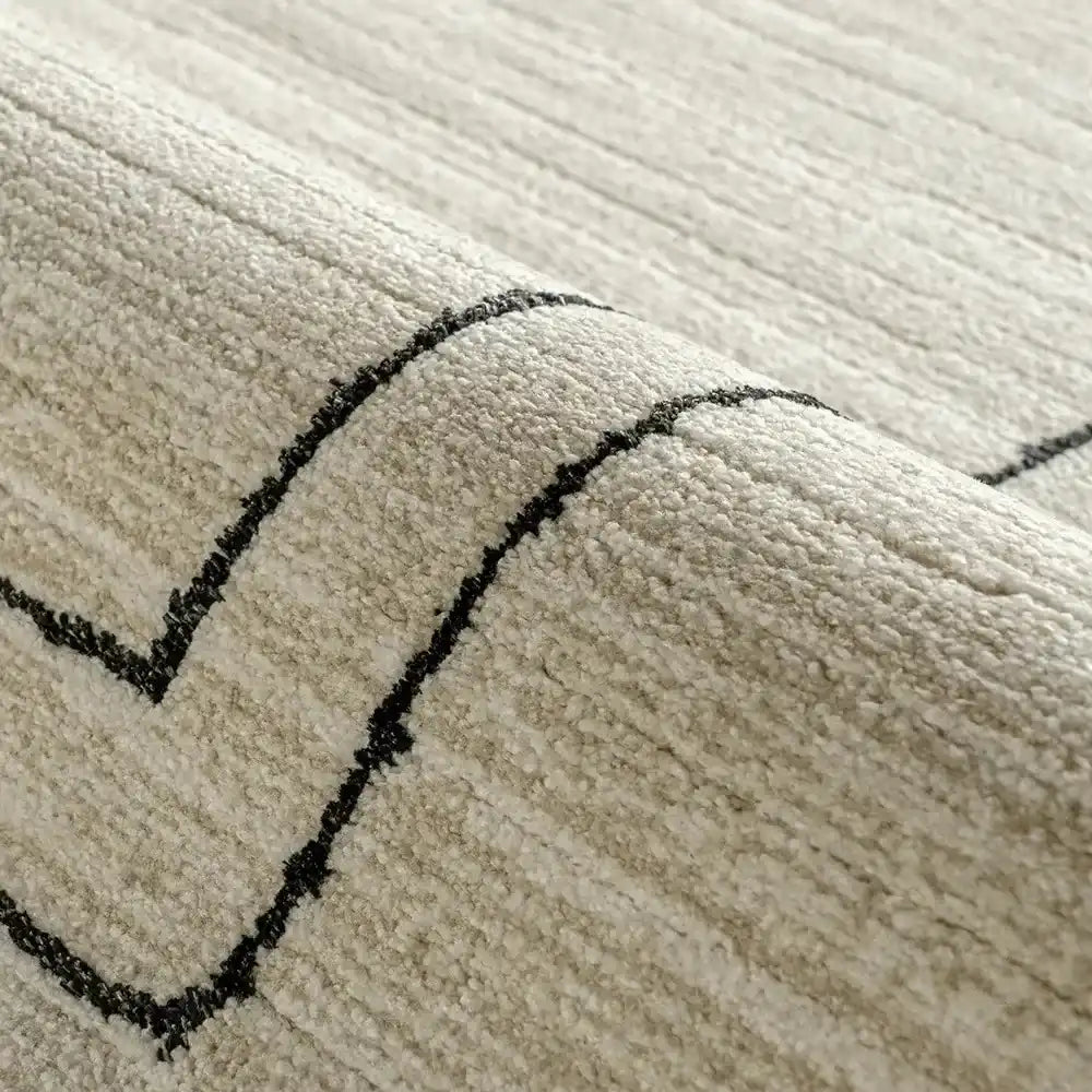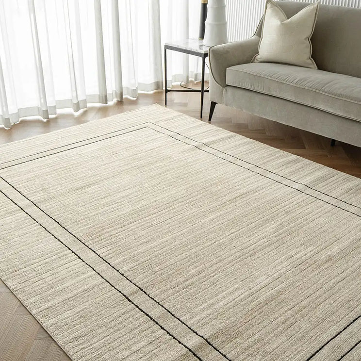 سجادة رقيقة وفاخرة من اللون البيج والأسود للمسة من الأناقة في المكان.