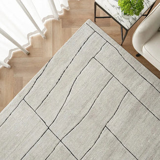 Narrow Stripes Grid Design Biege Taupe Carpet