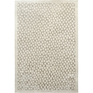 Cream Taupe Small Squares Pattern Round Carpet