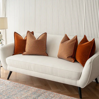 Rust Velvet & Grid Pattern Cushions with Horse Accent