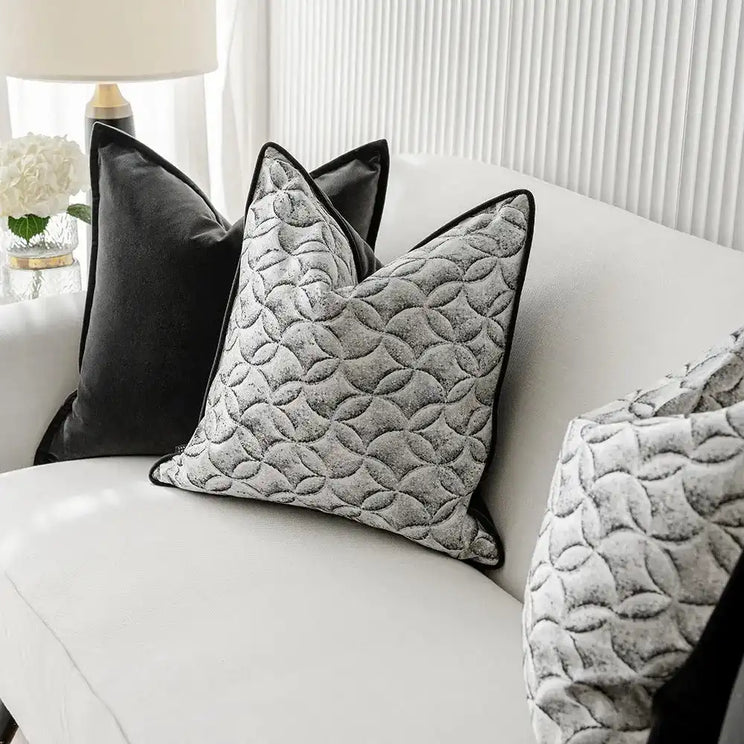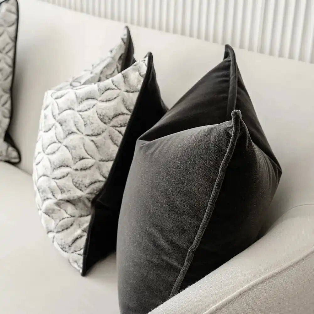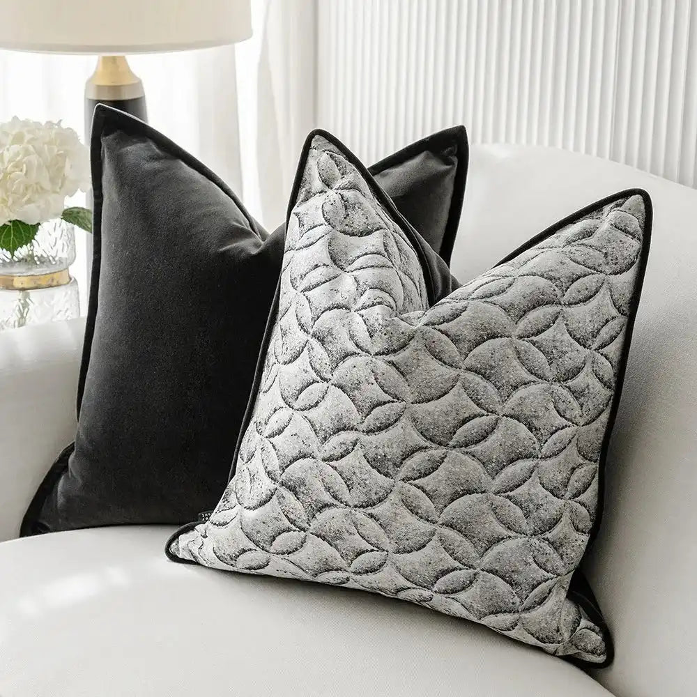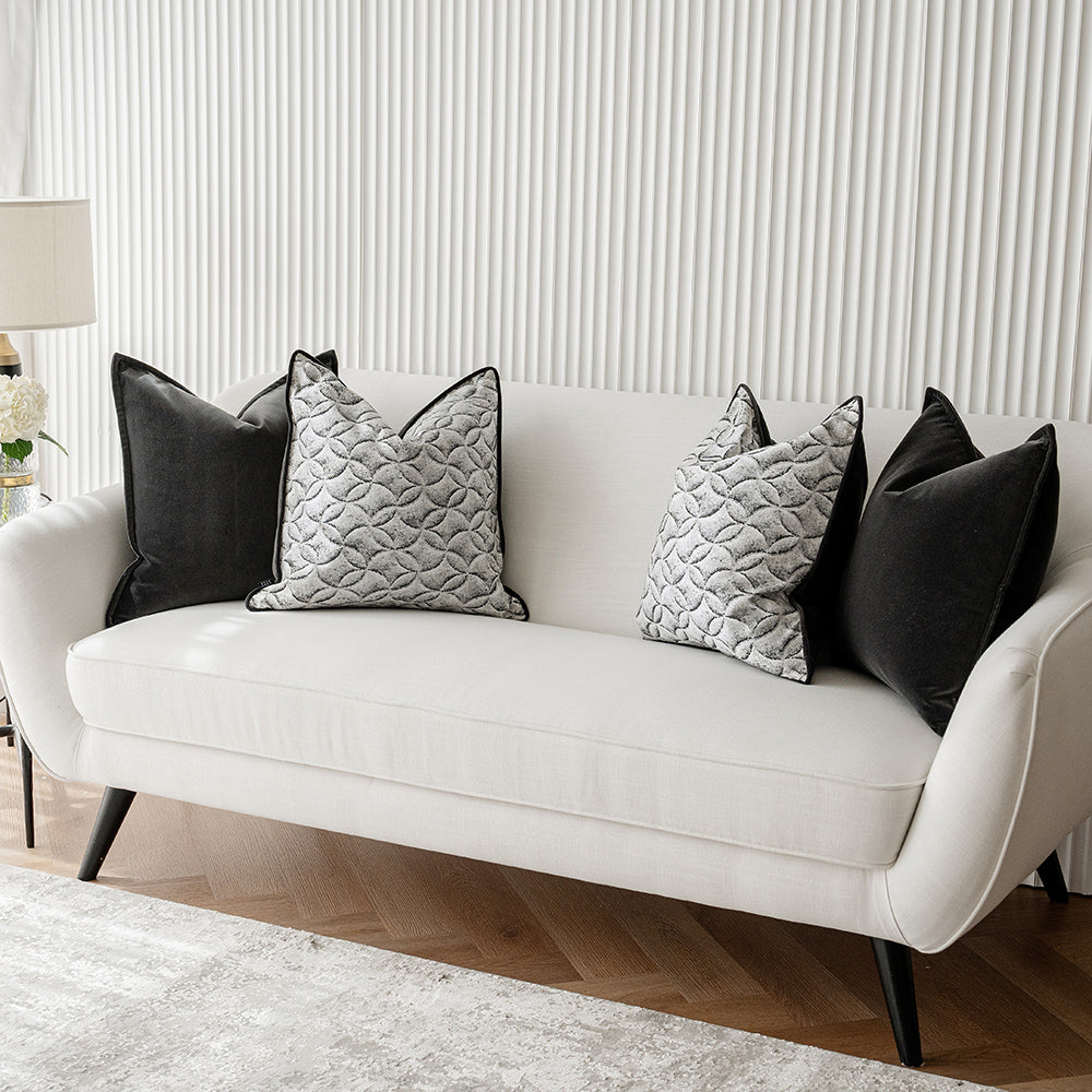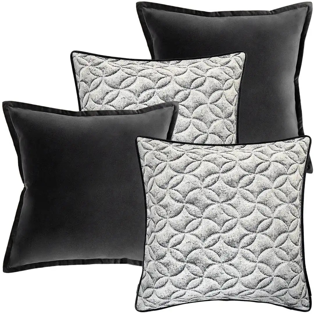 In a chic dark grey and white colourway, this contemporary cushion bundle mixes luxe black velvet with a clever tromple l'oeil quilt design to create a stylish finishing touch for your interior.