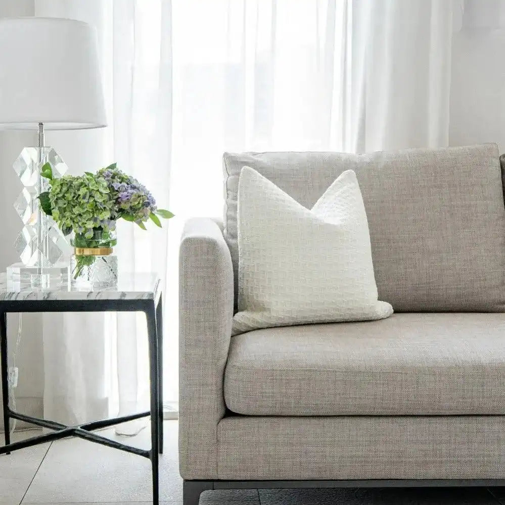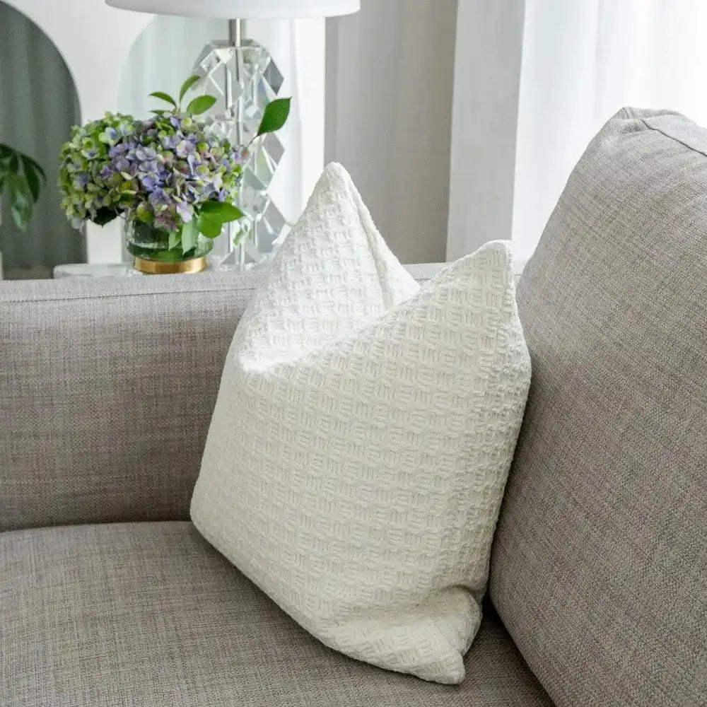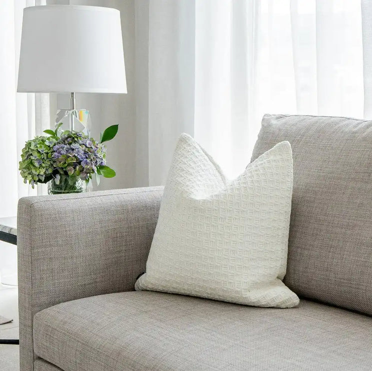 With its small square pattern, our Adora Bianca cushion will add a luxury layer of texture to your interior. This white cushion will complement any cushion arrangement.