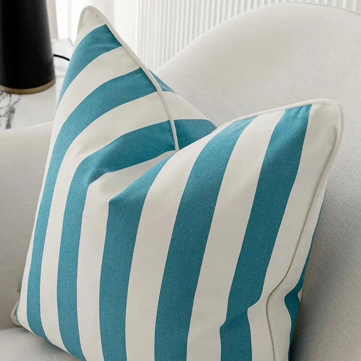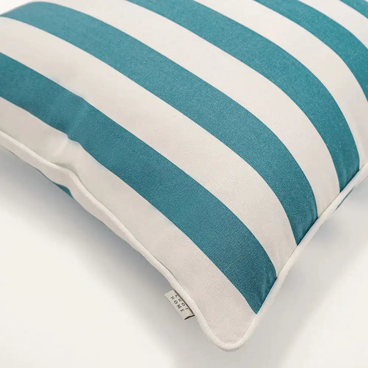 Bring a cool coastal feel to your kitchen, living room or patio with this striped cushion. In white and turquoise, this breezy cushion is designed for both indoor and outdoor use.