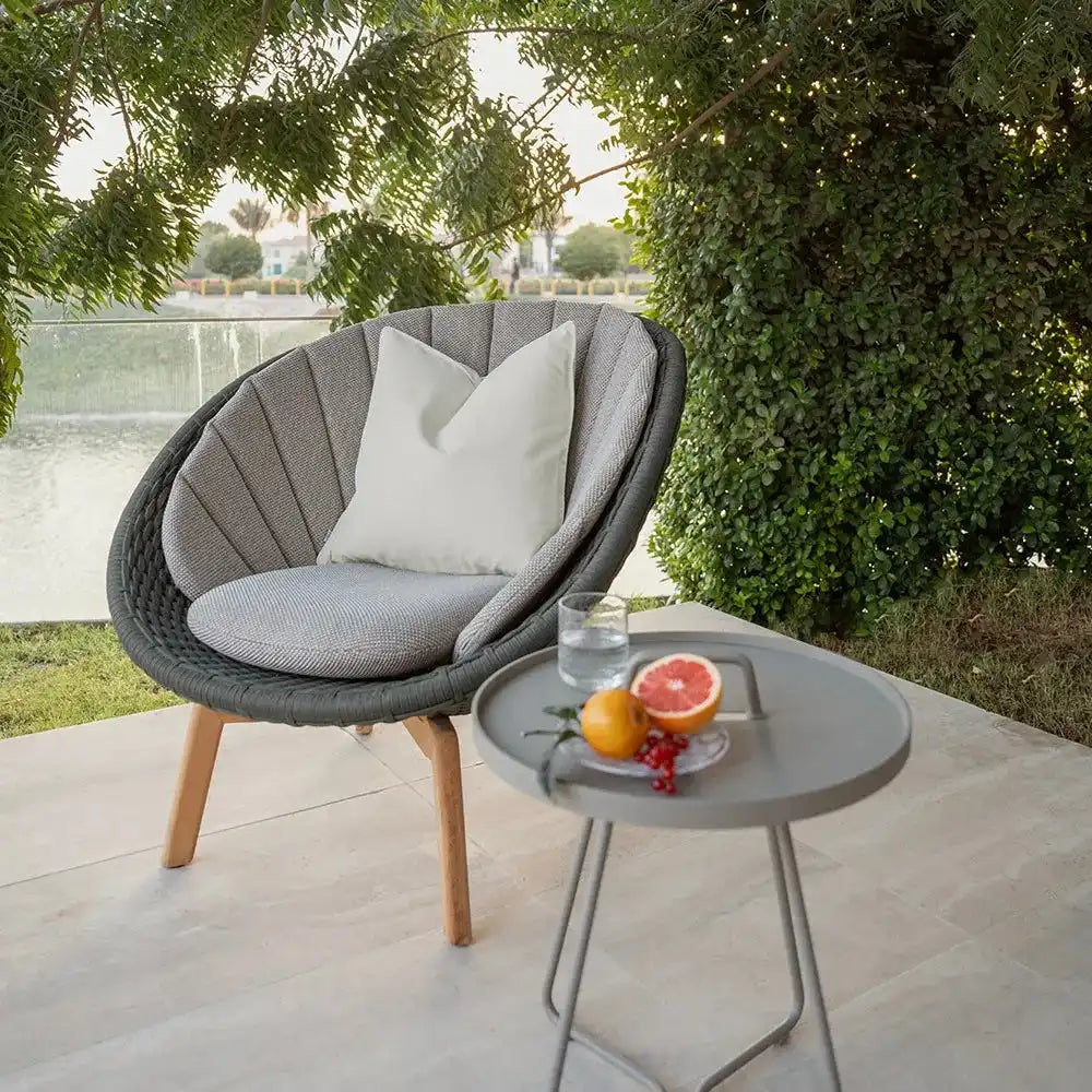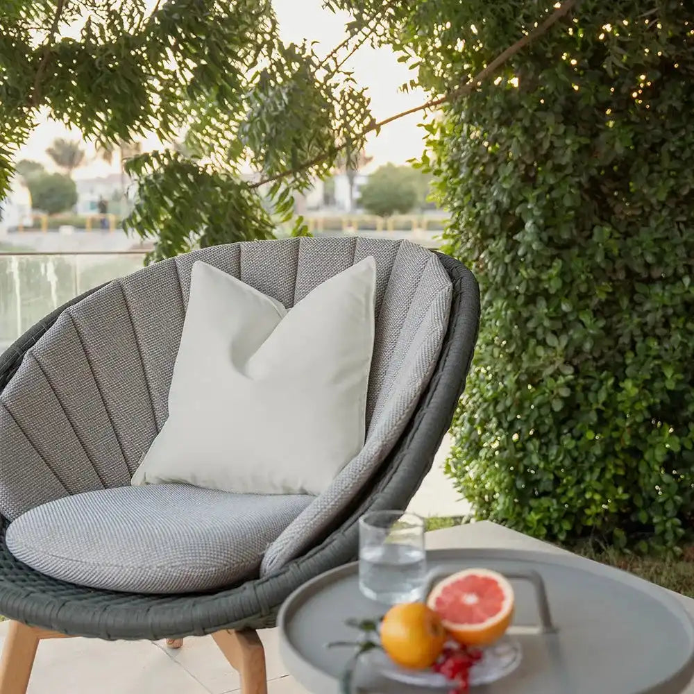 Summer entertaining made easy: this versatile white cushion is ideal for both indoor and outdoor use, so you can create a comfortable space for your guests when you take the party outside.