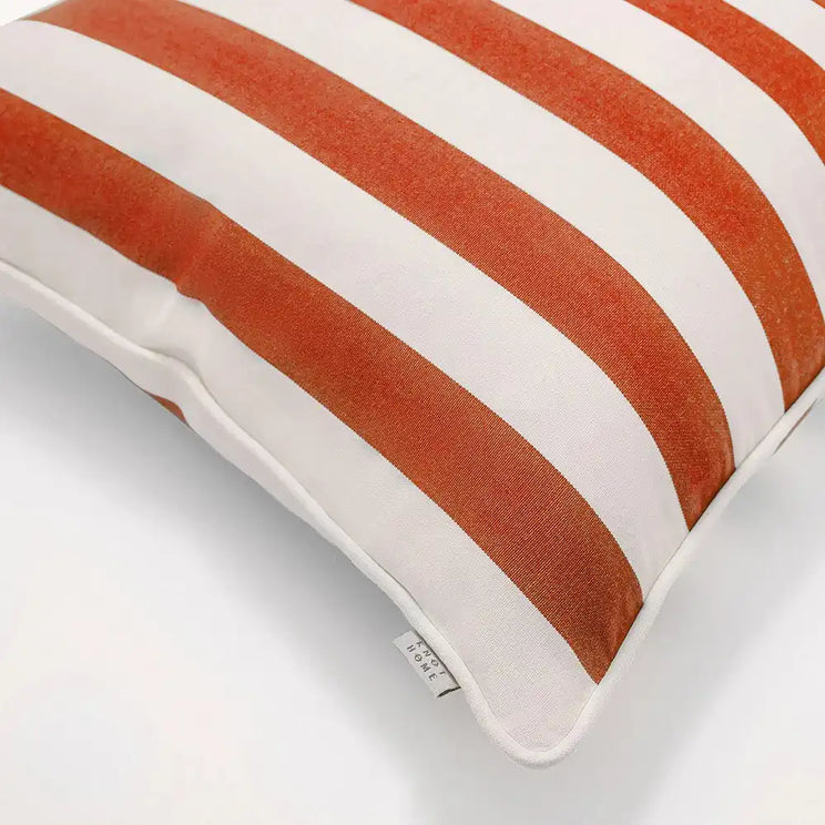 With candy stripes all over, this white and coral cushion will brighten up your living space. The striped cushion works just as well outside as it does indoors, so it's ideal for outdoor entertaining.