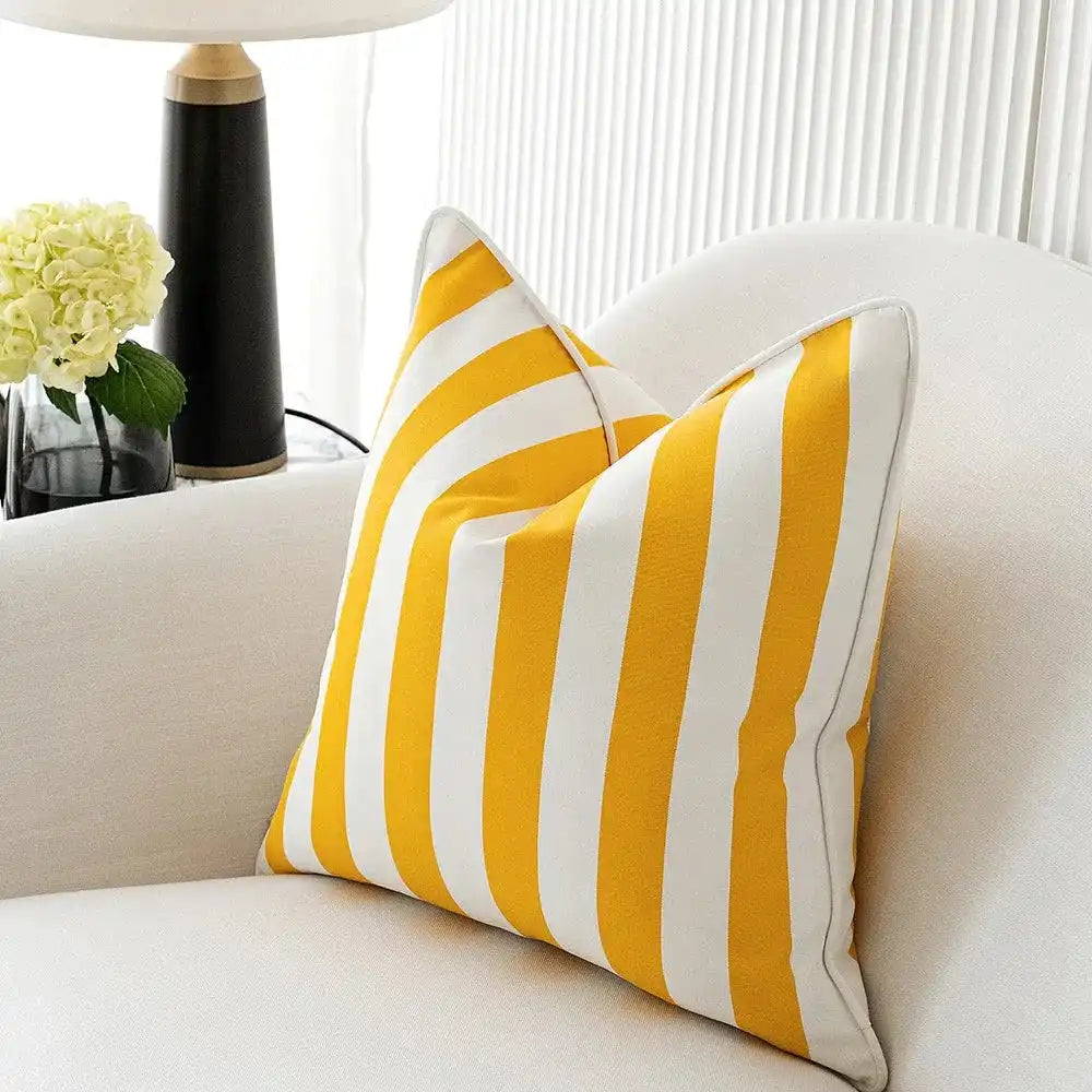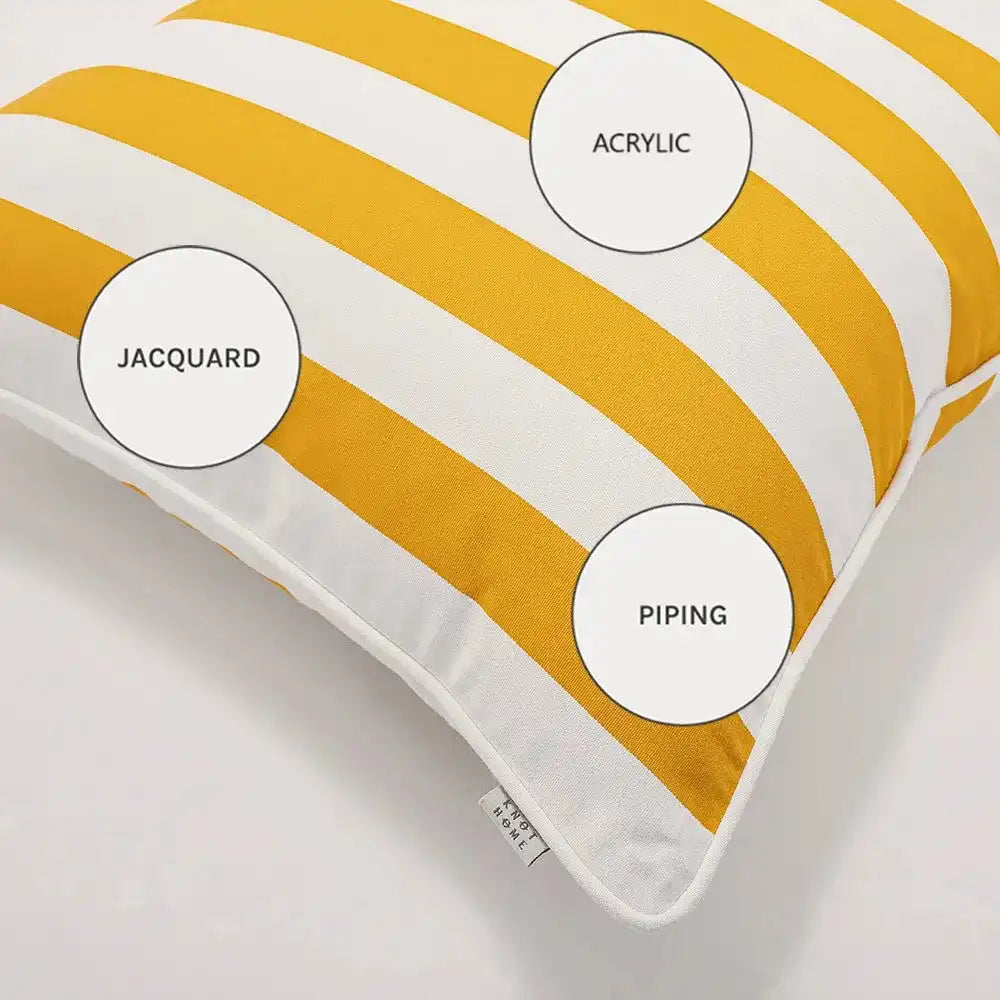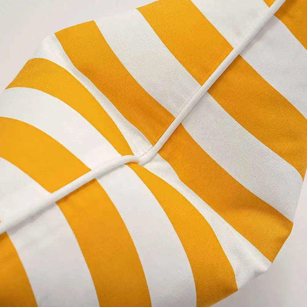 Here comes the sun: this white and golden yellow cushion will bring the sunshine to your home. Indoors or out, this joyful striped cushion is designed to raise a smile.