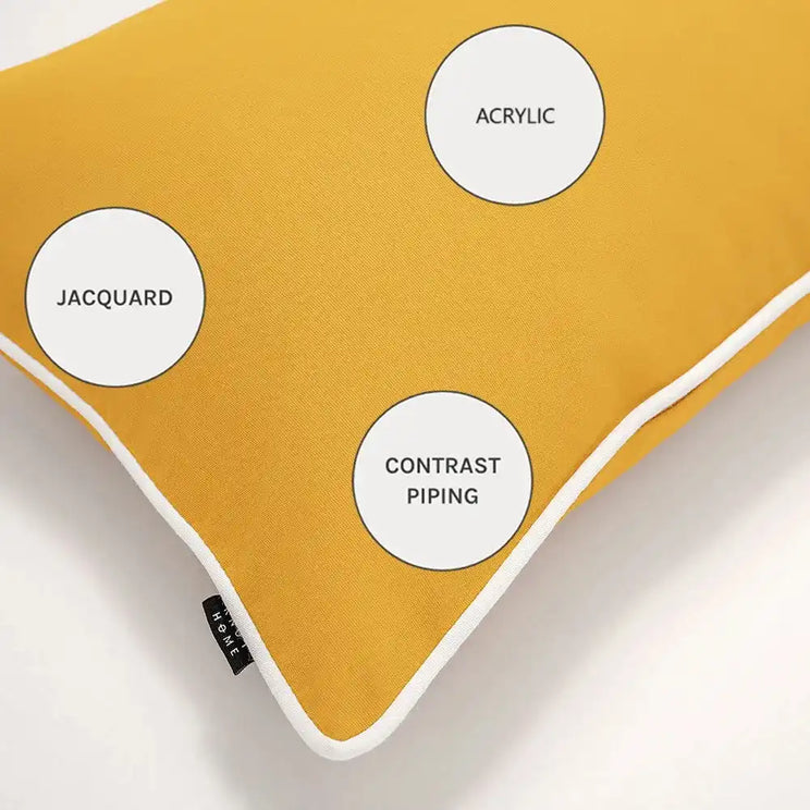 This bright yellow cushion is a ray of sunshine for your home. In sunflower yellow with contrast ivory piping, this accent cushion will add a joyful touch to both indoor and outdoor spaces.