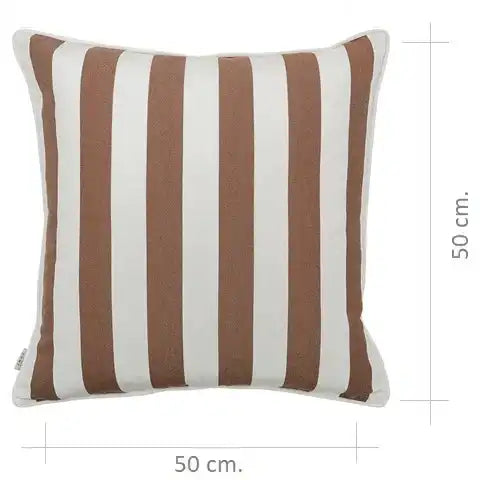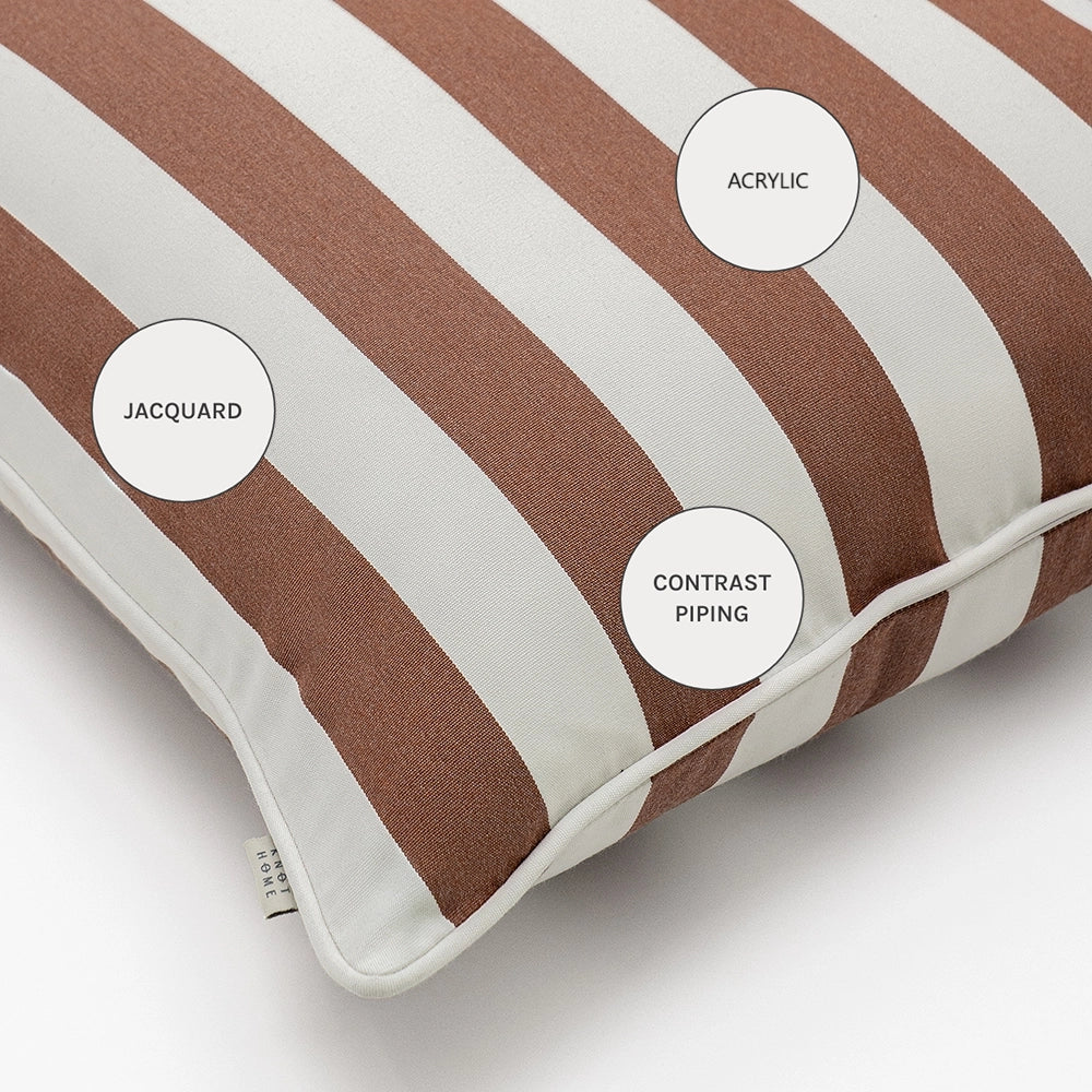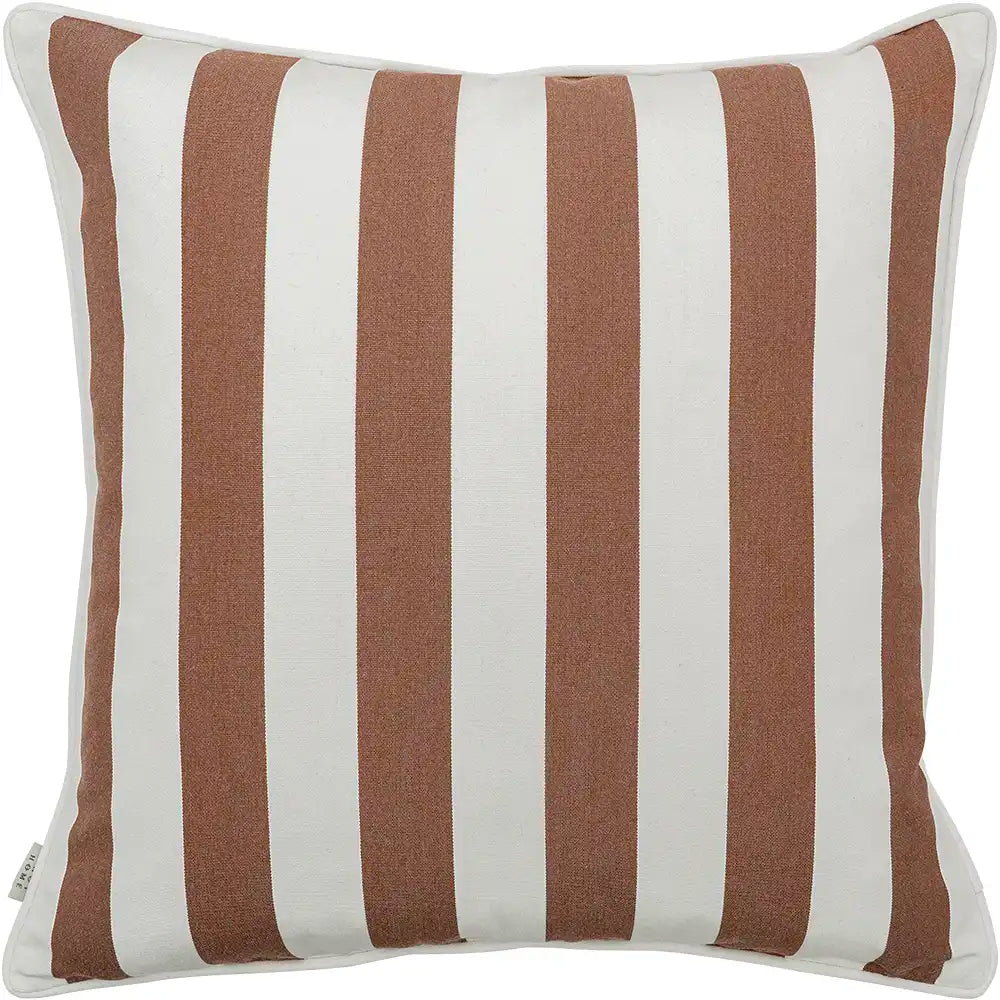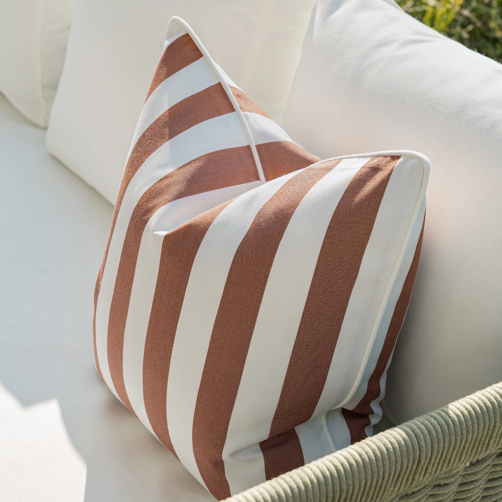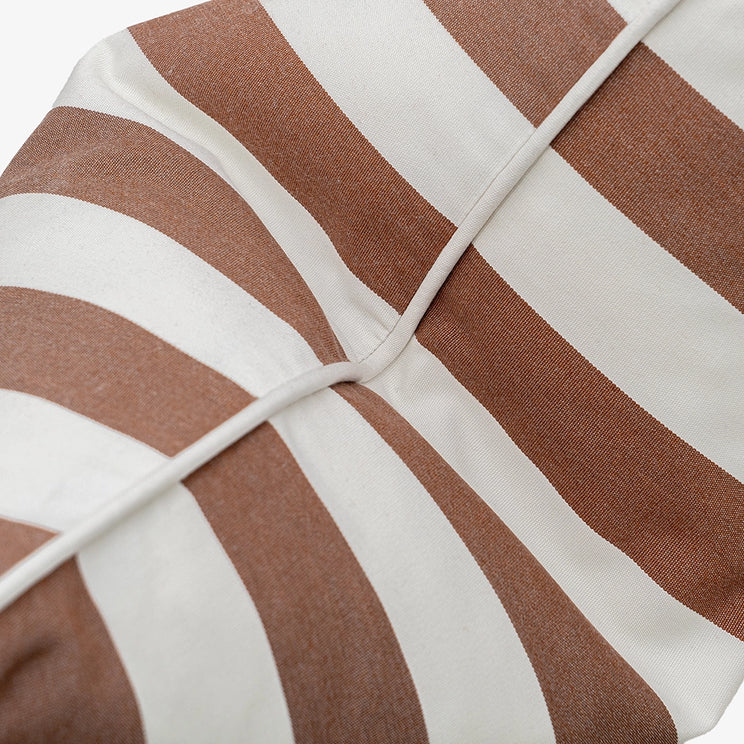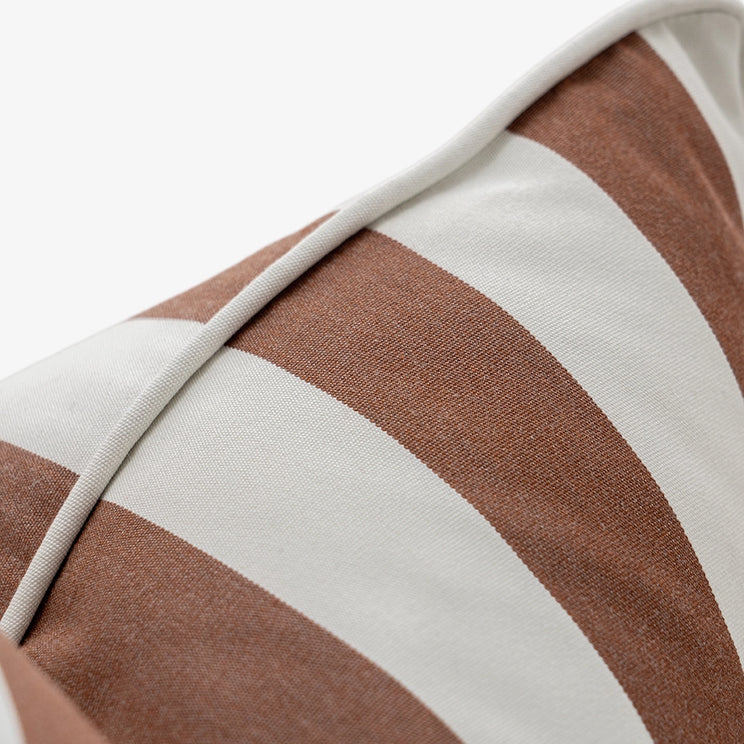 Wide rust and ivory stripes create a clean, rhythmic pattern with a softly textured surface, bringing a balanced blend of warmth and clarity to the setting.