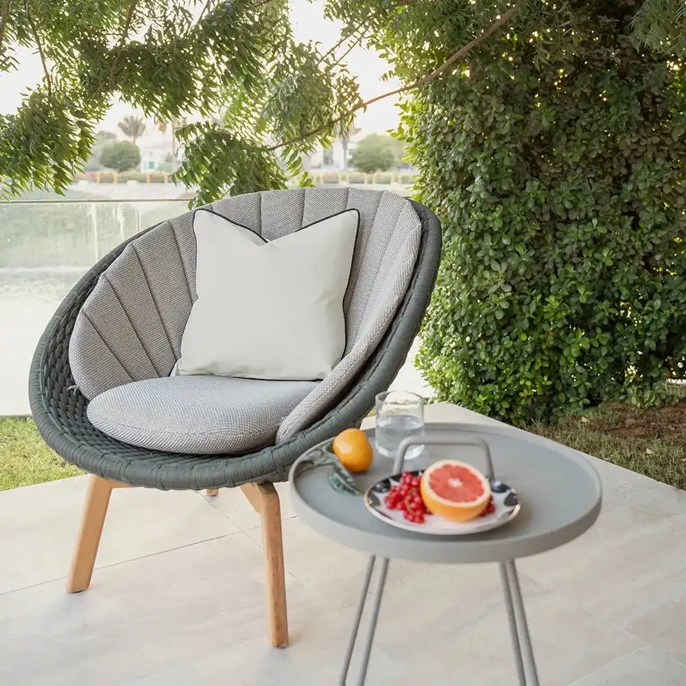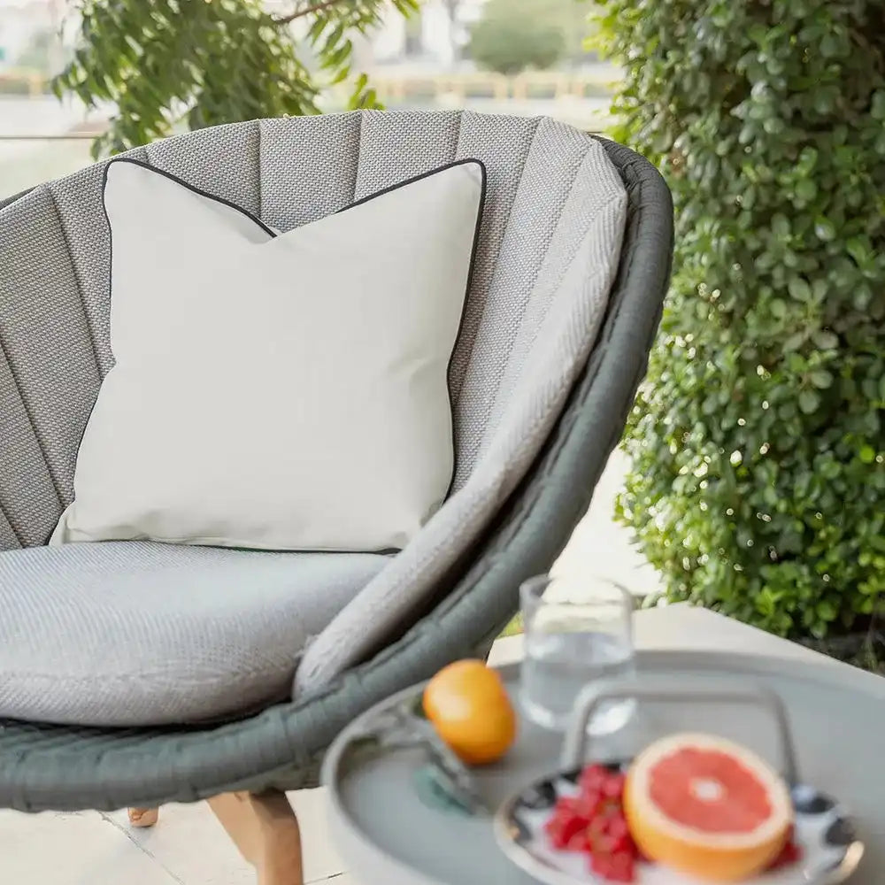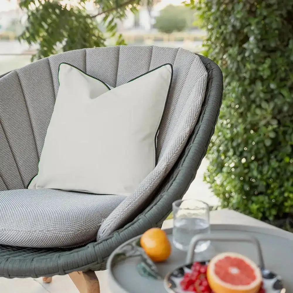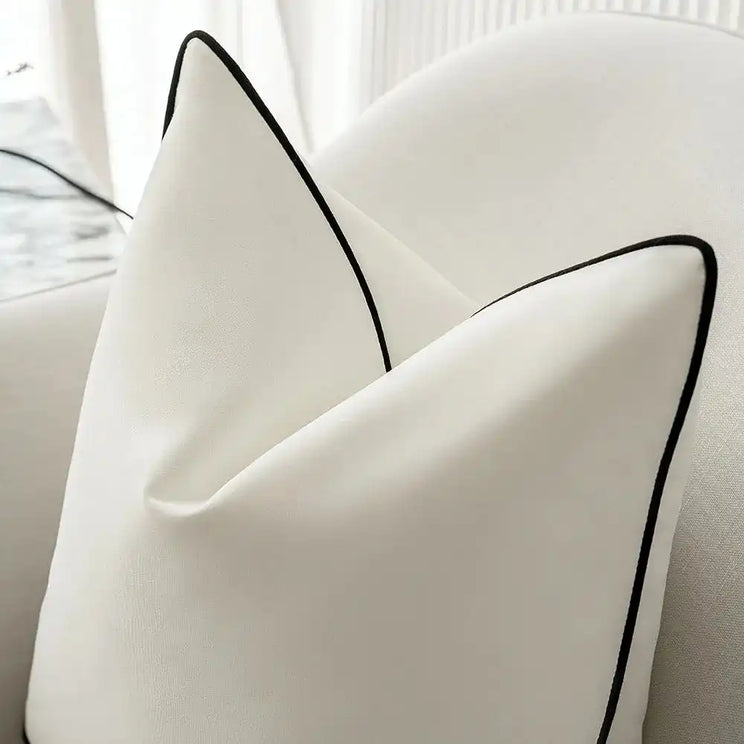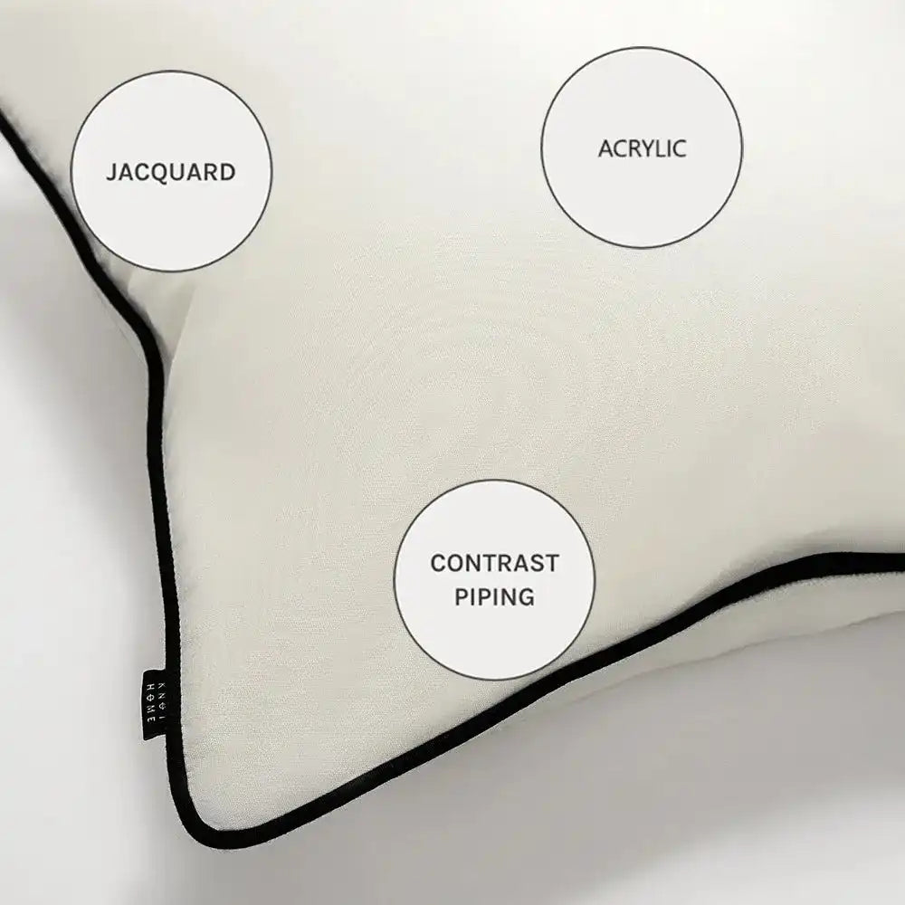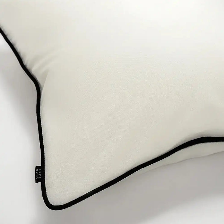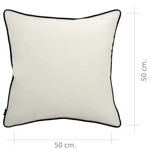 Bold contrast piping defines the silhouette of this black and white cushion. This monochrome cushion can be used both inside and out, making it a great addition to your outdoor space.