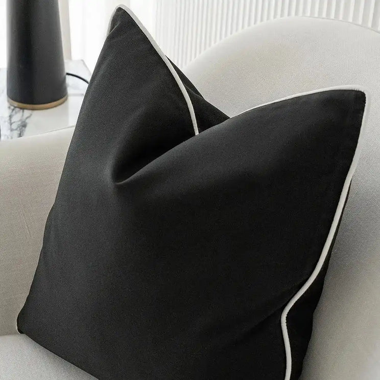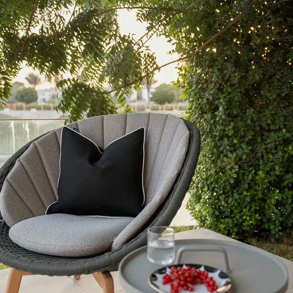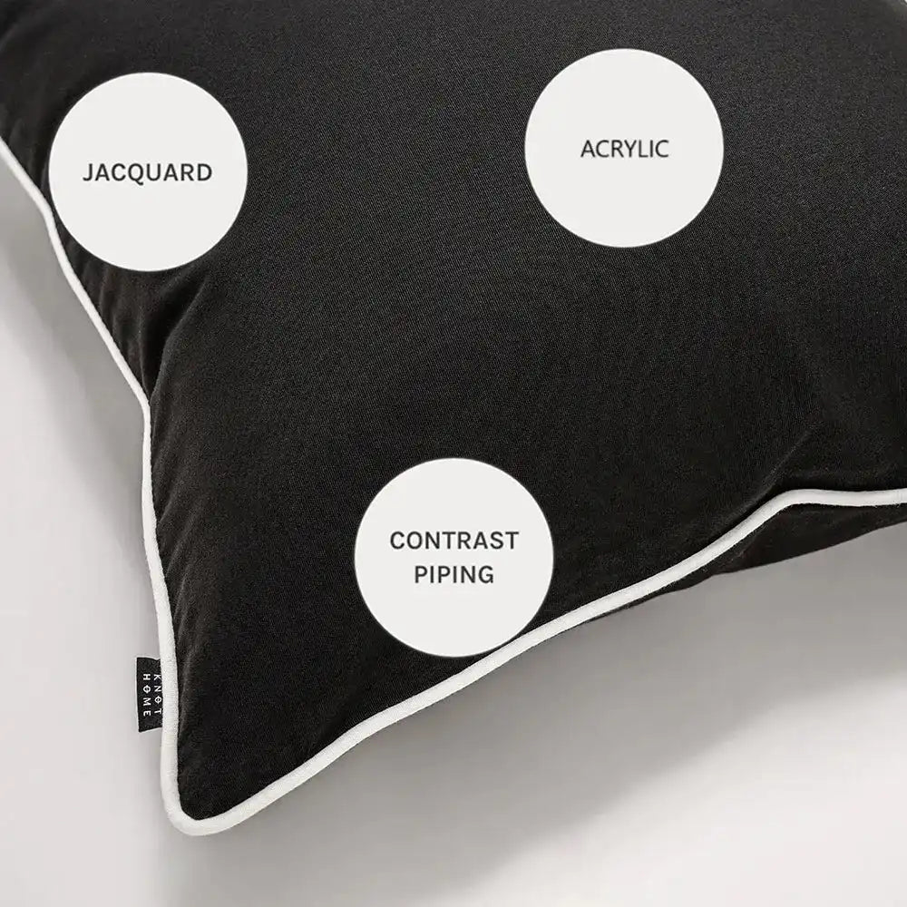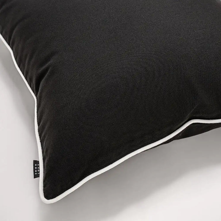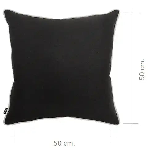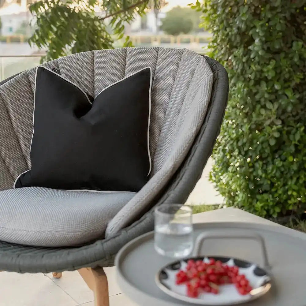 In deep black with contrast piping all the way around, our Aelia Steele cushion is perfect for pepping up your summer décor. This minimalist cushion is ideal for both indoor and outdoor use.