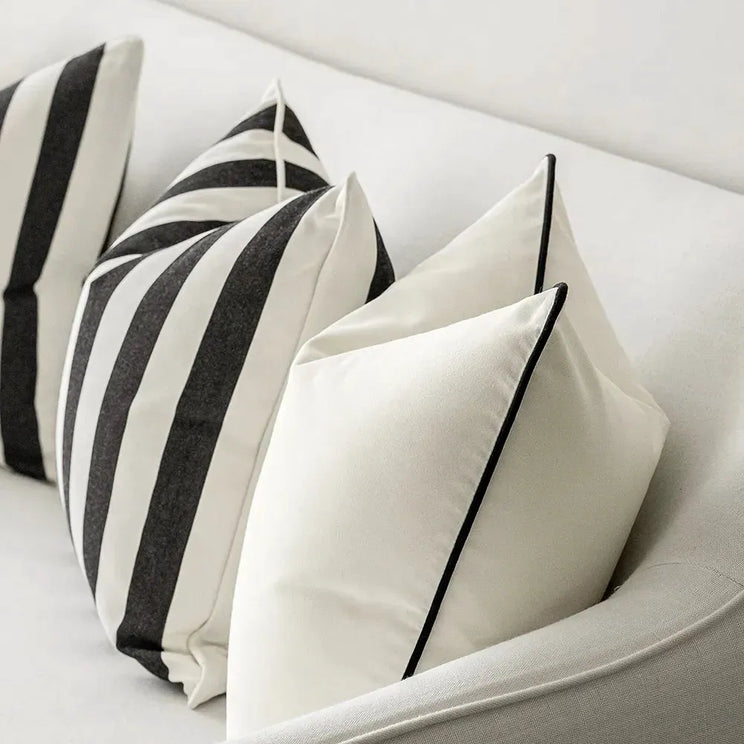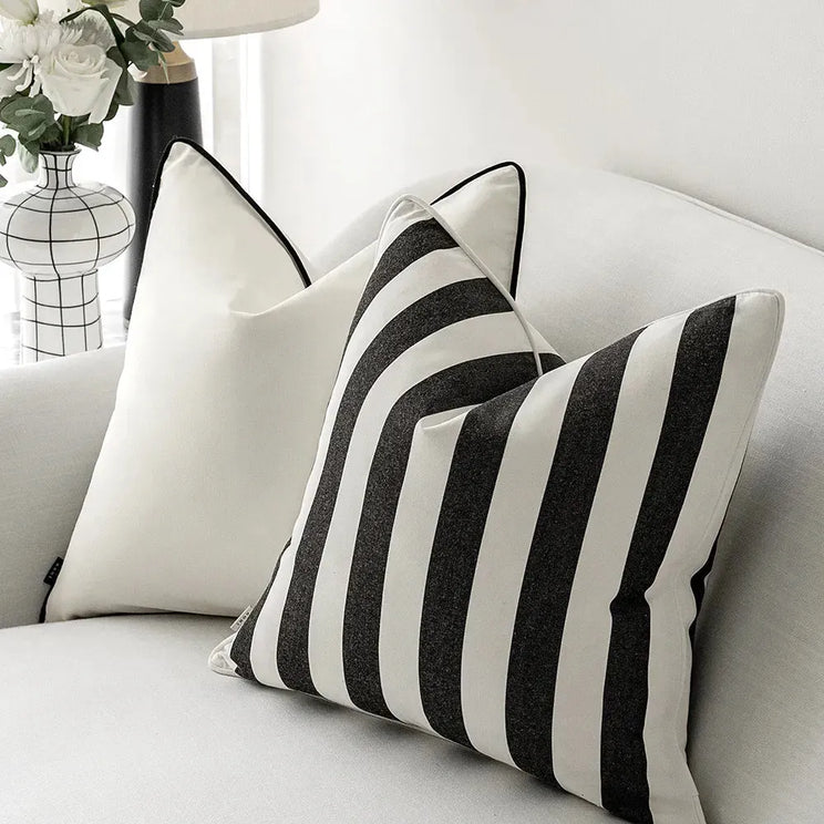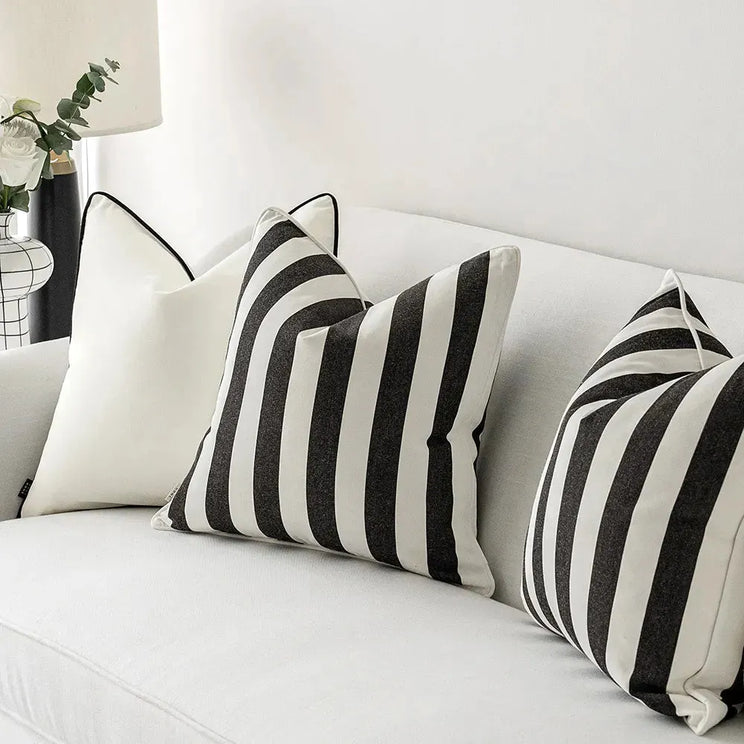 Upgrade your patio in time for the new season with this chic outdoor cushion set. The bundle includes two plain white cushions with contrast piping and two striped cushions for a coastal feel.