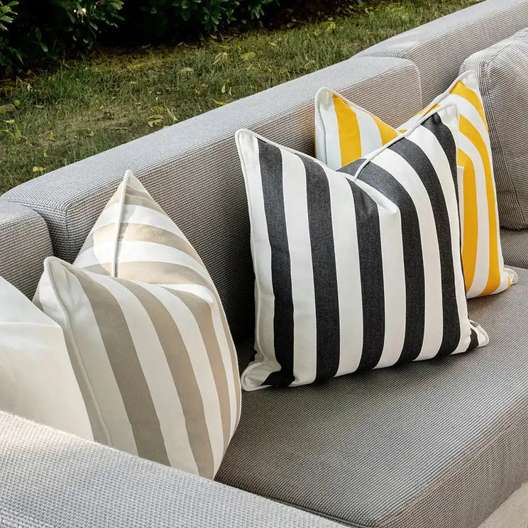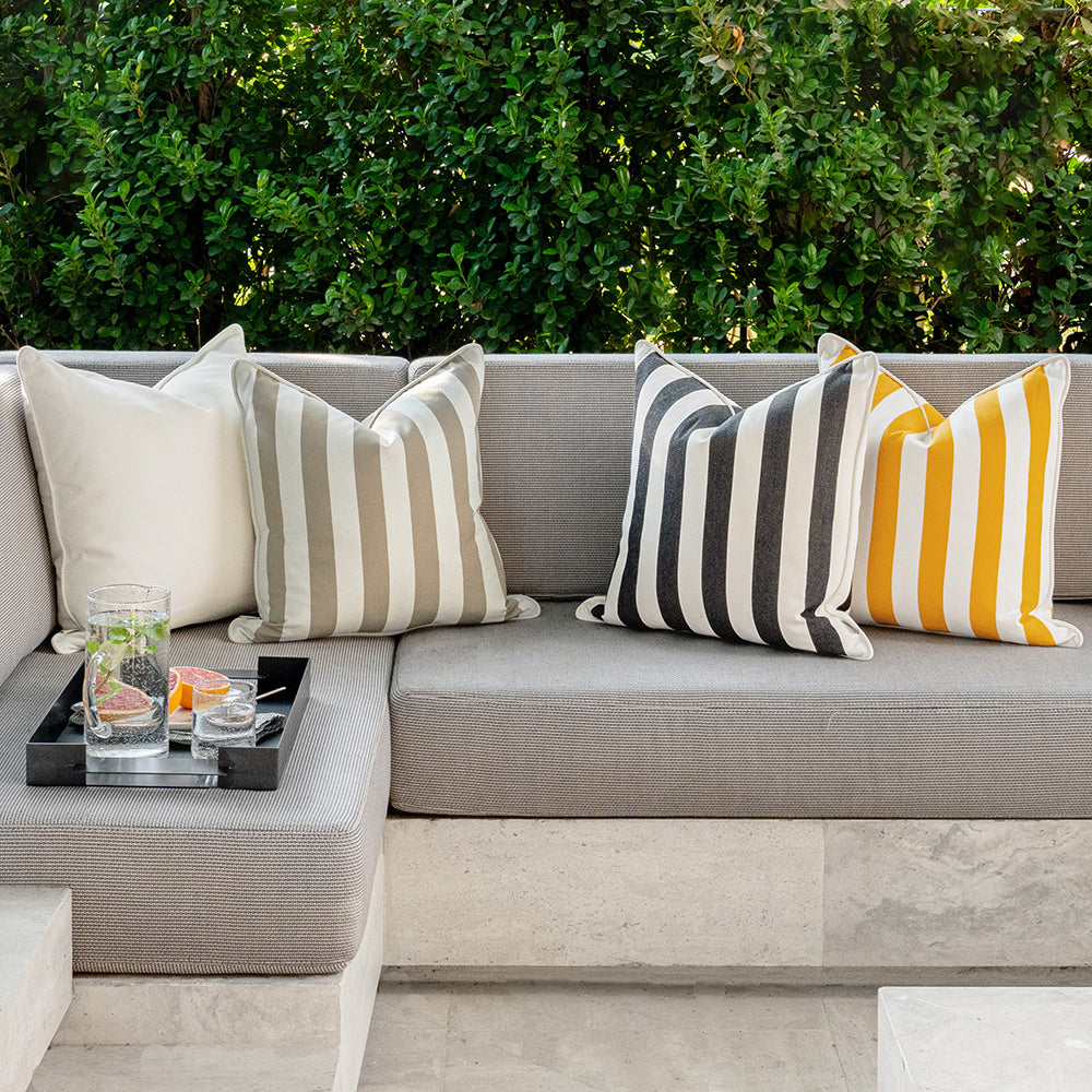 Entertaining outside? Set the mood with this bright and bold cushion bundle. We've paired a plain white cushion with three contrast-stripe cushions to create a stylish set for your lounge or patio.