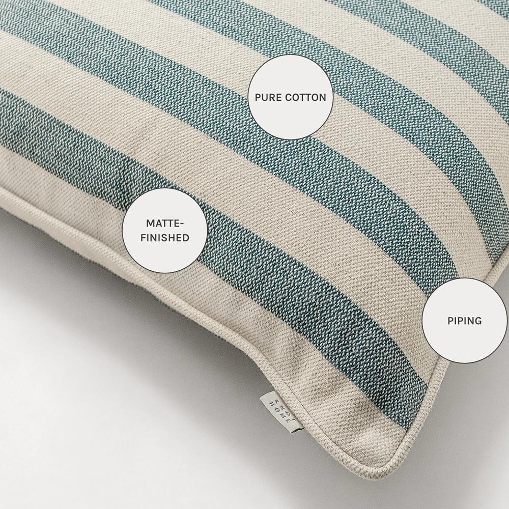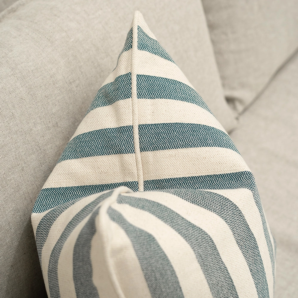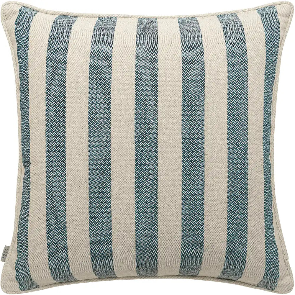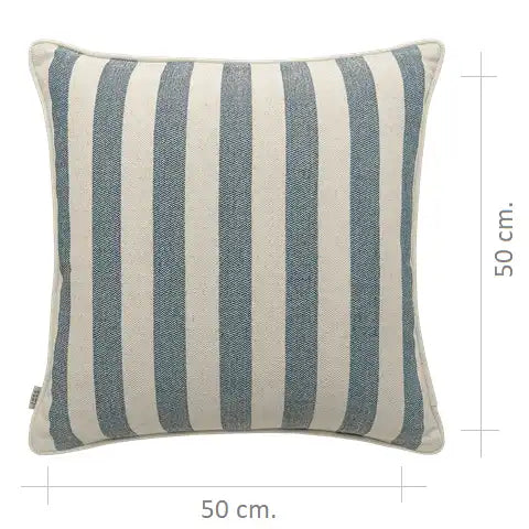 This blue and white striped cushion is packed with coastal charm. In pure cotton and with piping all the way around, the cushion has wide stripes front and back to bring the seaside to your sofa.