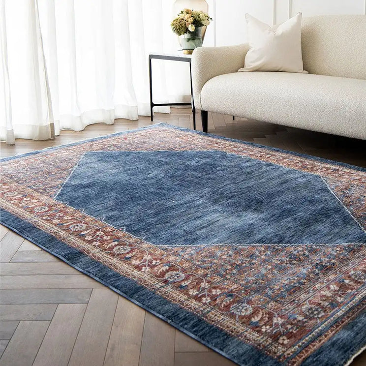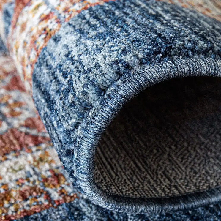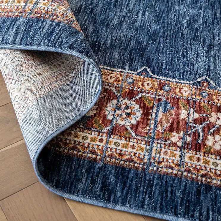 In blue and red, this richly-coloured area rug will bring a sense of opulence to your interior.