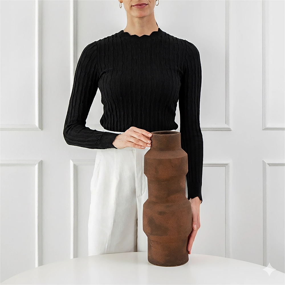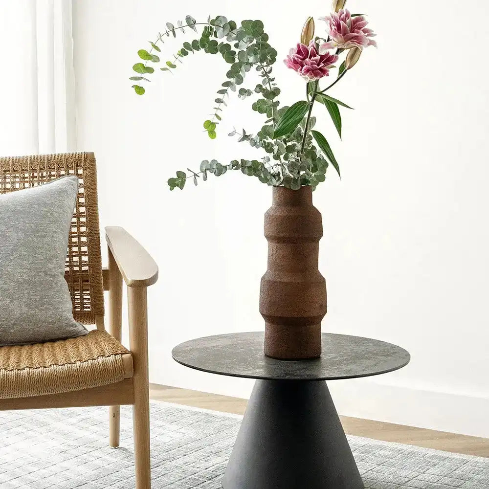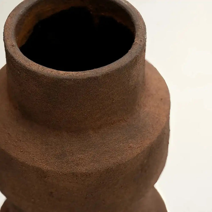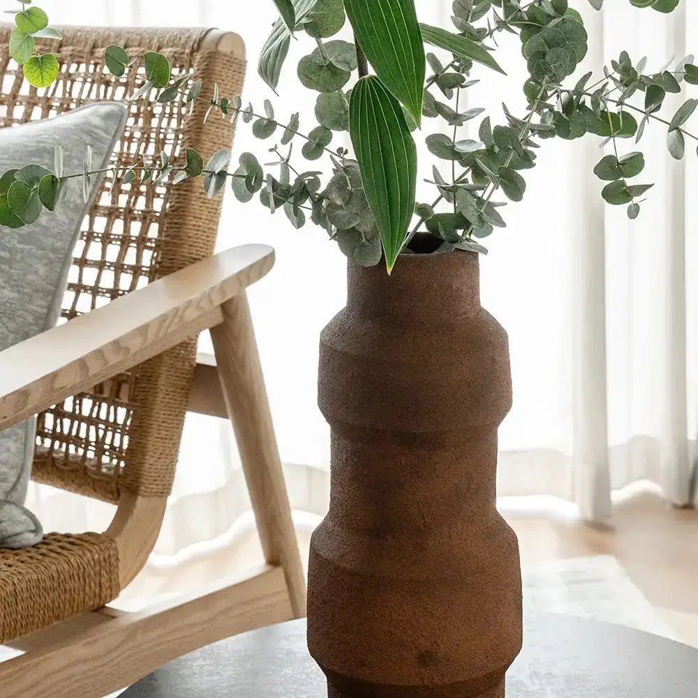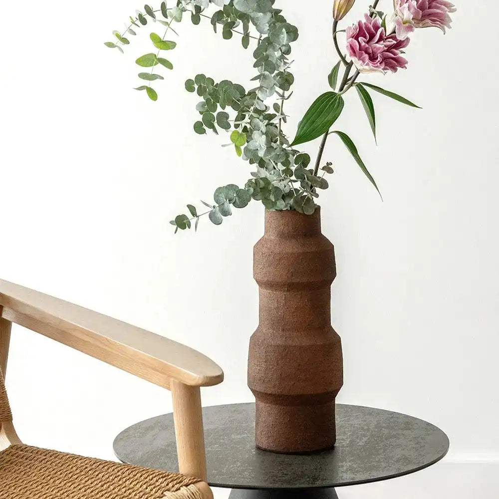 In earthy brown, this tall vase expertly brings antique and modern influences together. The flower vase has a textured surface and a modern stacked silhouette – ideal for any style of interior.