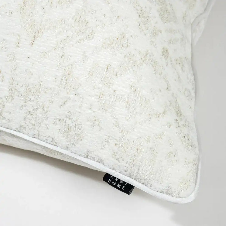 This white cushion has an all-over abstract criss-cross pattern in a shimmering thread and is finished with piping all around. Its subtle texture will add a layer of luxury to your living space.