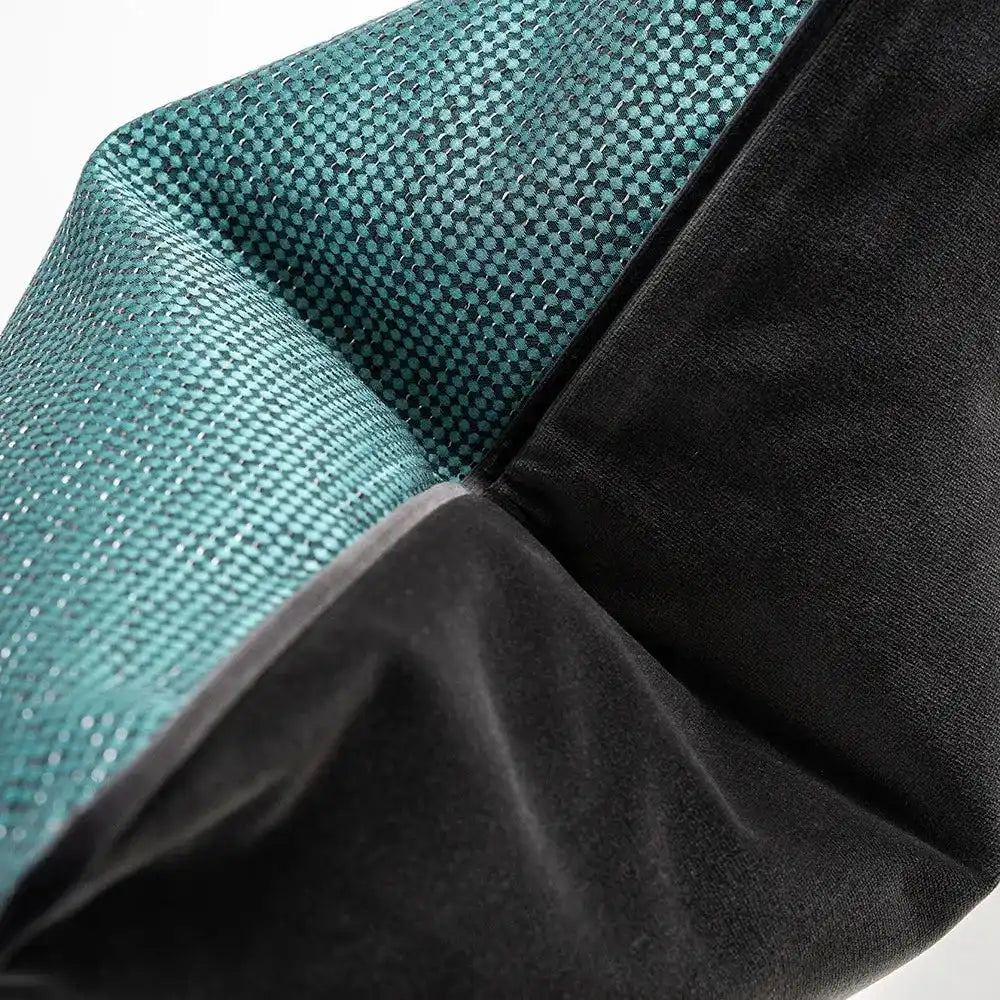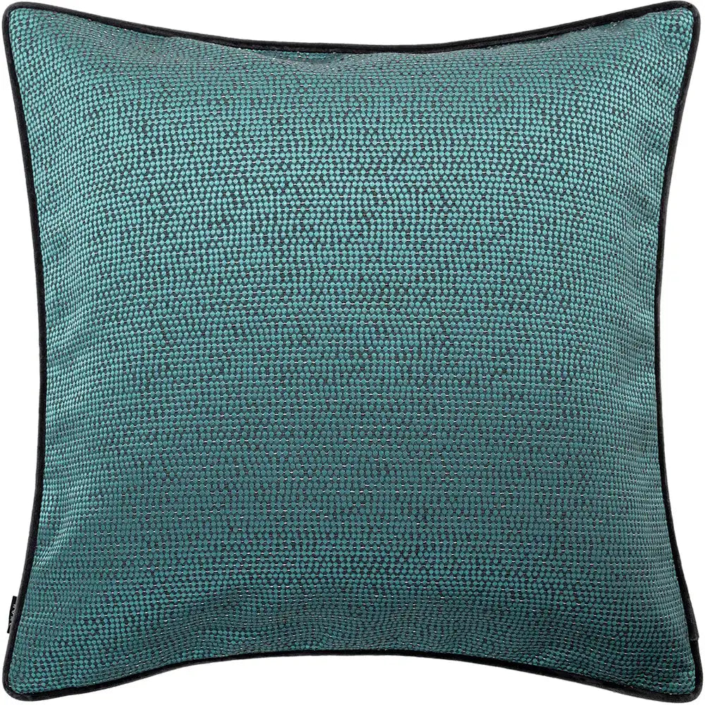In vivid blue outlined in black, this contemporary cushion will elevate a modern interior. The blue cushion has small circles with silver highlights on the front, and a black velvet back for contrast.
