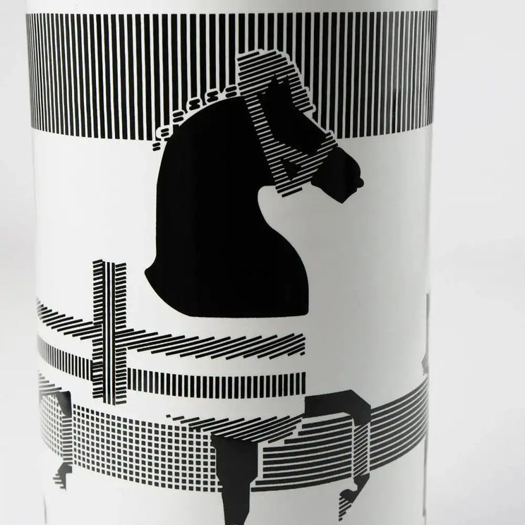 Create a modern display with this sleek porcelain vase. In black and white, this best-selling vase has a playful horse motif and gold bands top and bottom for an opulent touch.