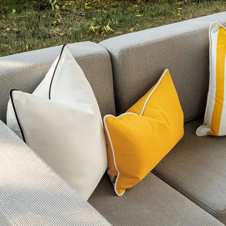 Design: One plain and one striped cushion, and one white cushion and one accent cushion with contrast piping