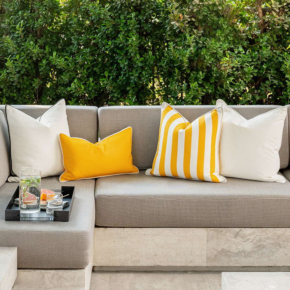 Every day will feel like summer with this white and golden yellow cushion bundle. These versatile cushions can be used both indoors and outside in your garden or patio for flexible entertaining.