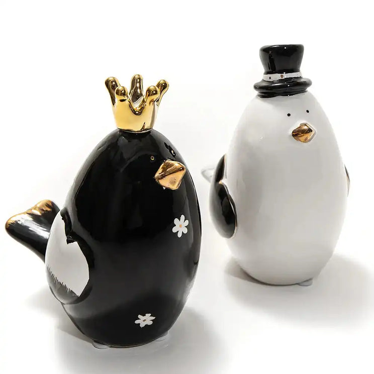 This set includes two glazed ceramic lovebirds in black, white and gold. Decorated with love hearts, these ceramic birds would make a wonderful wedding, engagement or anniversary gift.