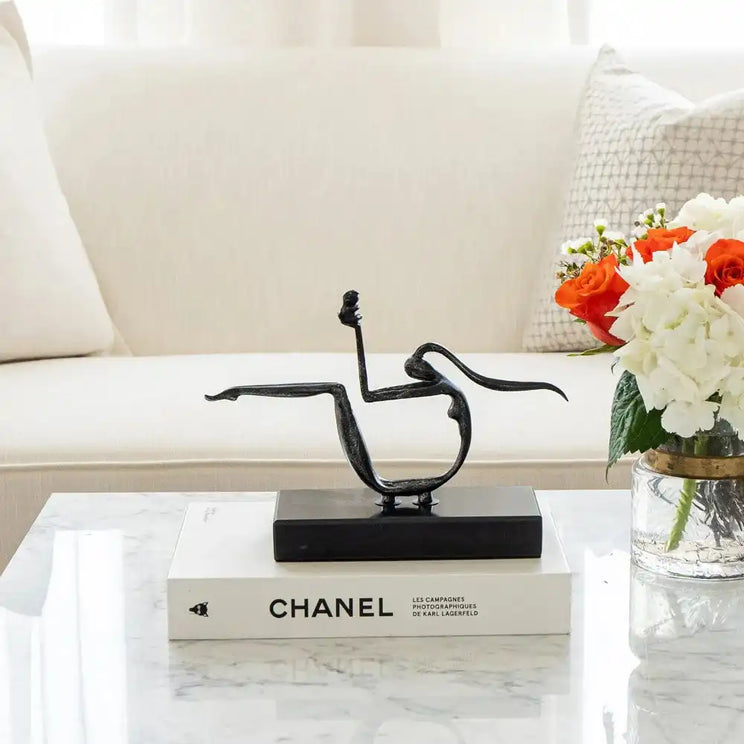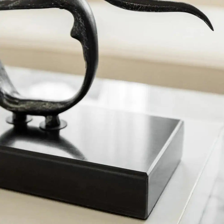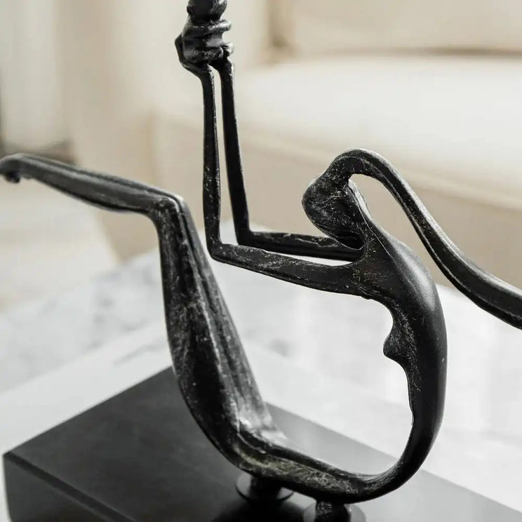 This sleek sculpture features a stylised figure of a mother and child in antique-effect metal on a black marble base. It makes an eye-catching addition to any style of home: classic or contemporary.