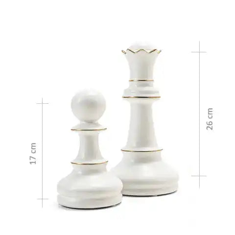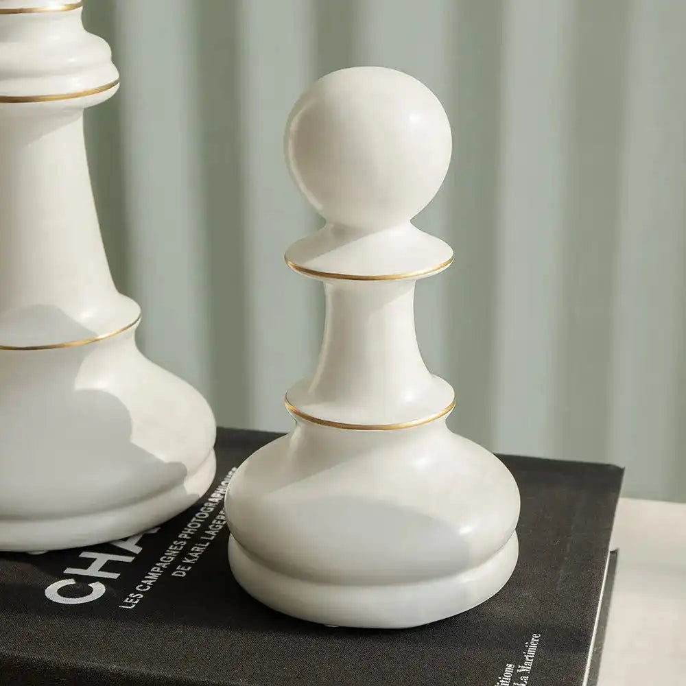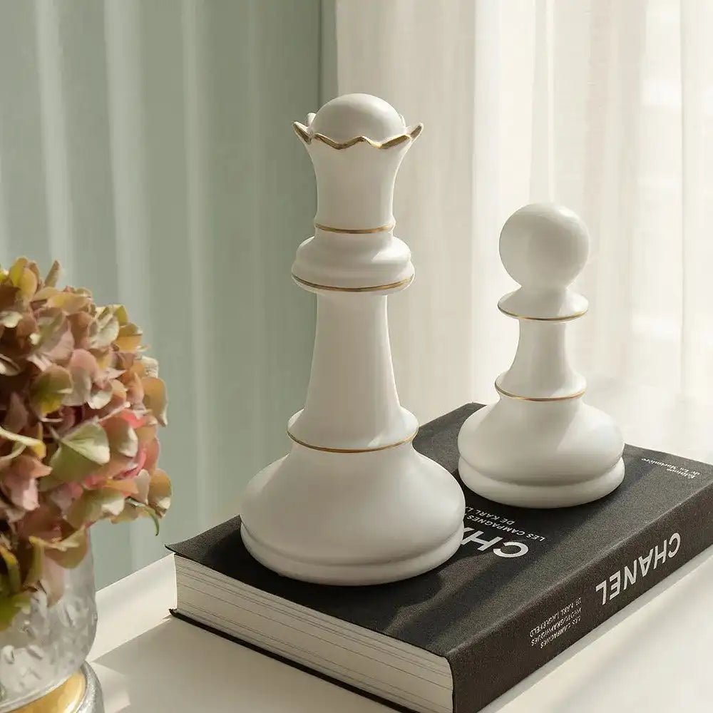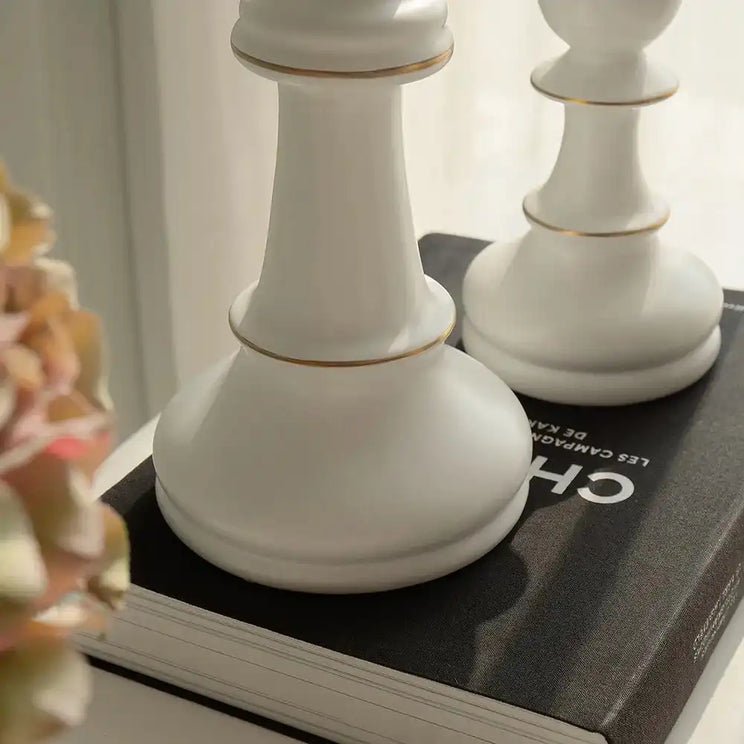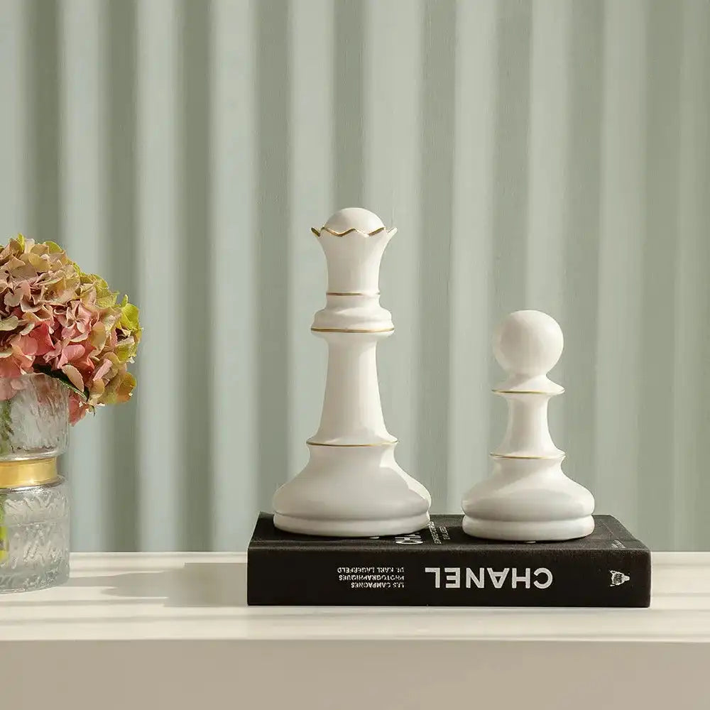 2 Pcs White Chess Pieces Ceramic Figures