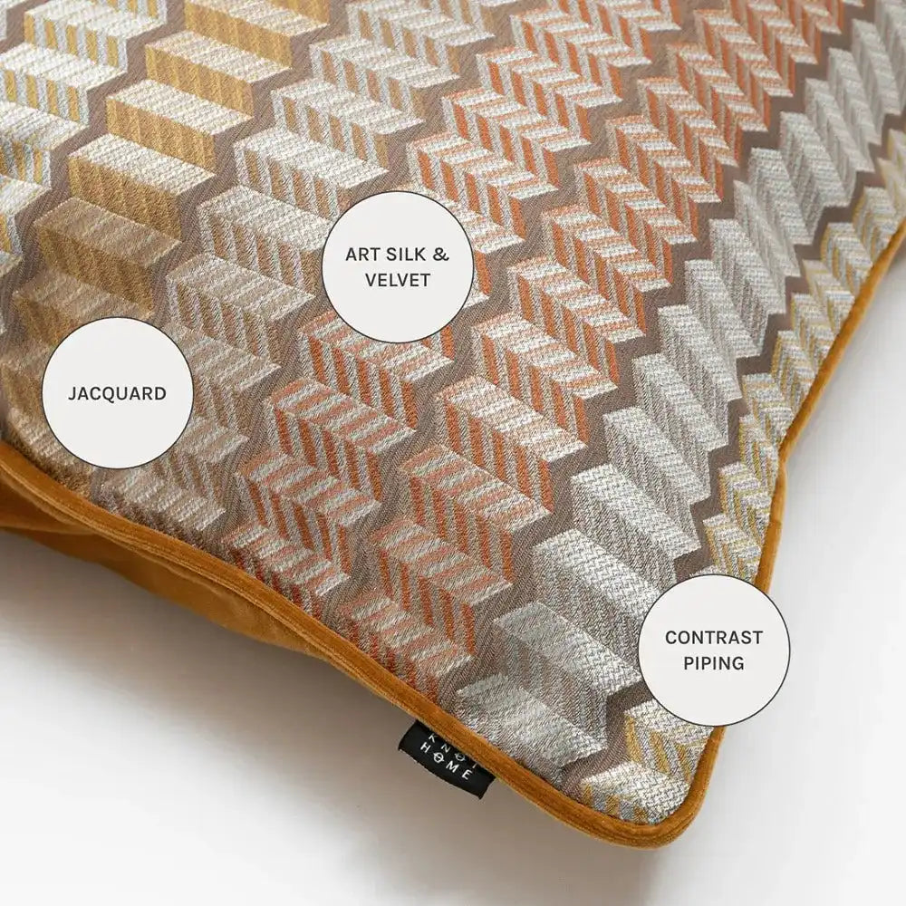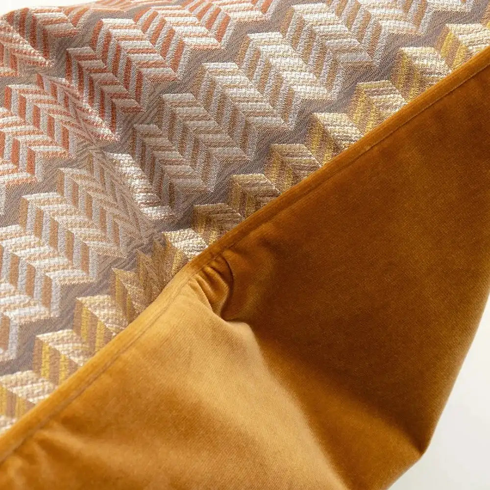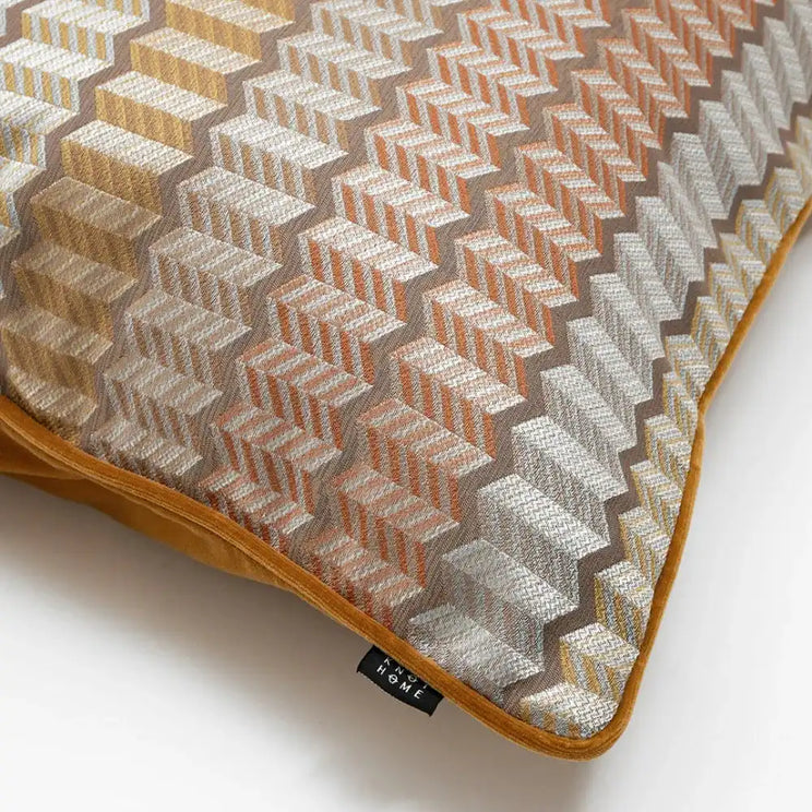 The front of this op-art cushion features a 3D jacquard pattern, while the back is made from plain orange velvet. It's a great way to add bold pattern and warm colour to your living space.
