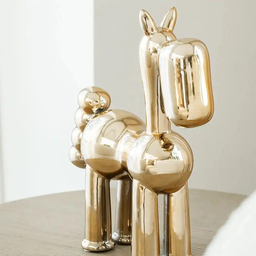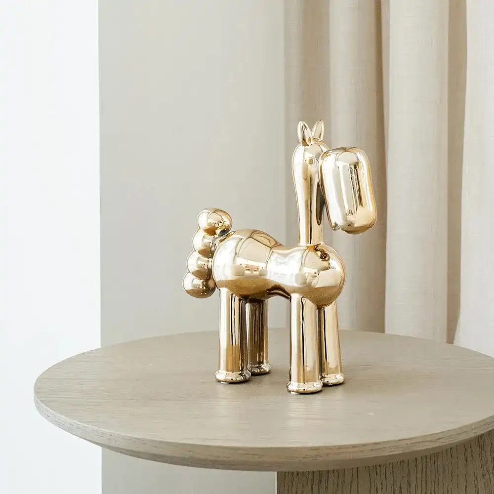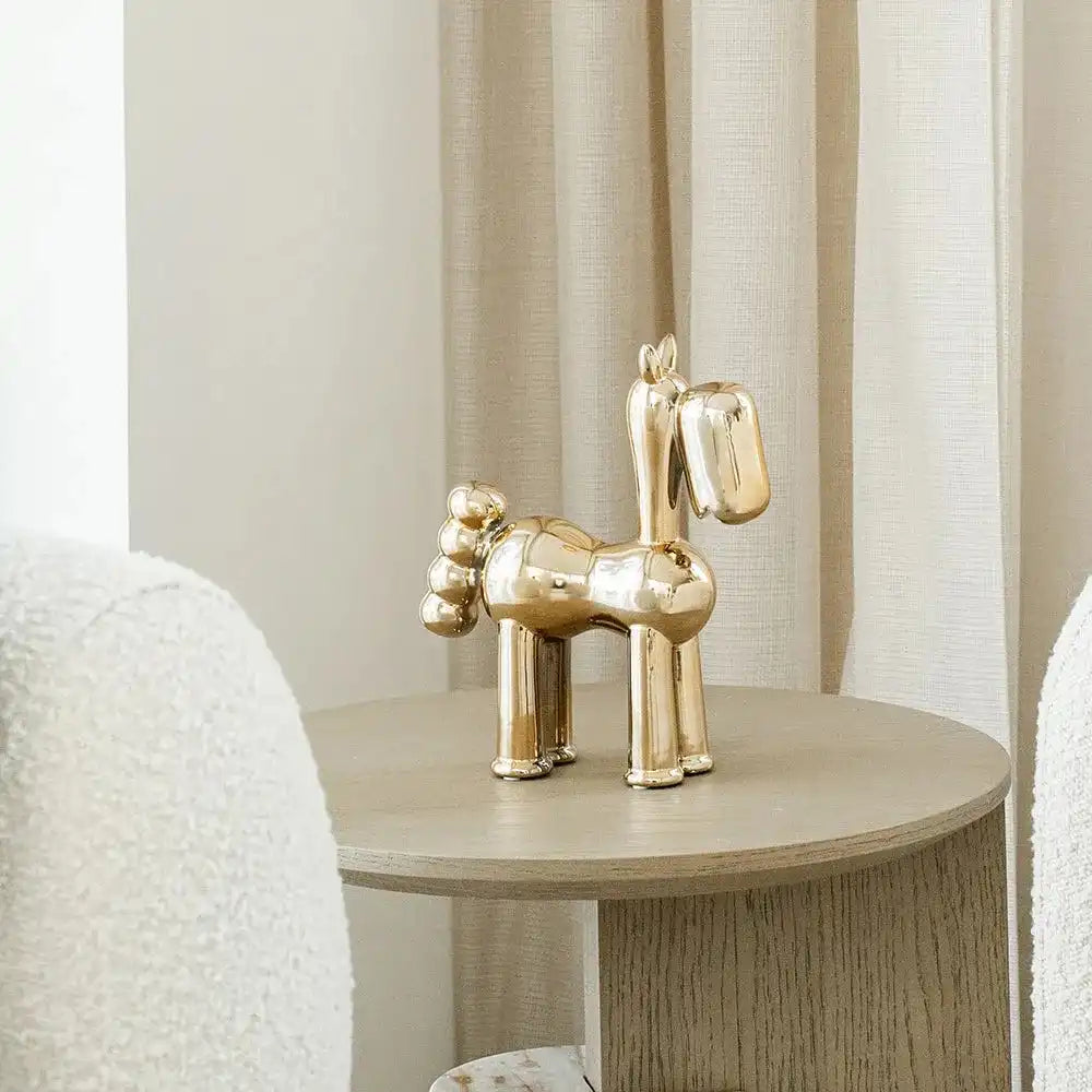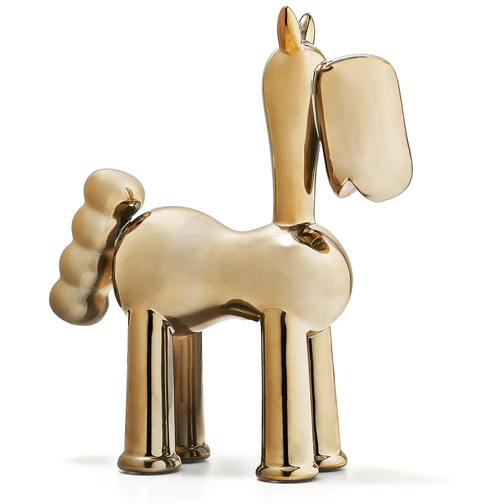 Start a conversation with our Cleo Arneson figure – this decorative statue is a playful focal point for any interior. The glossy gold horse also makes a great gift for the animal lover in your life.