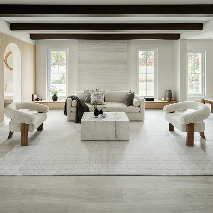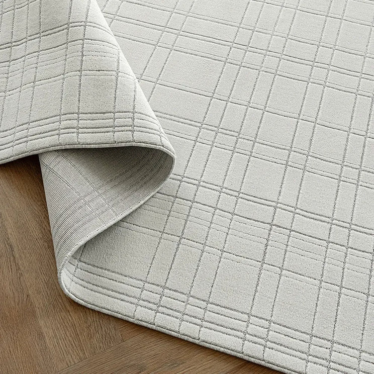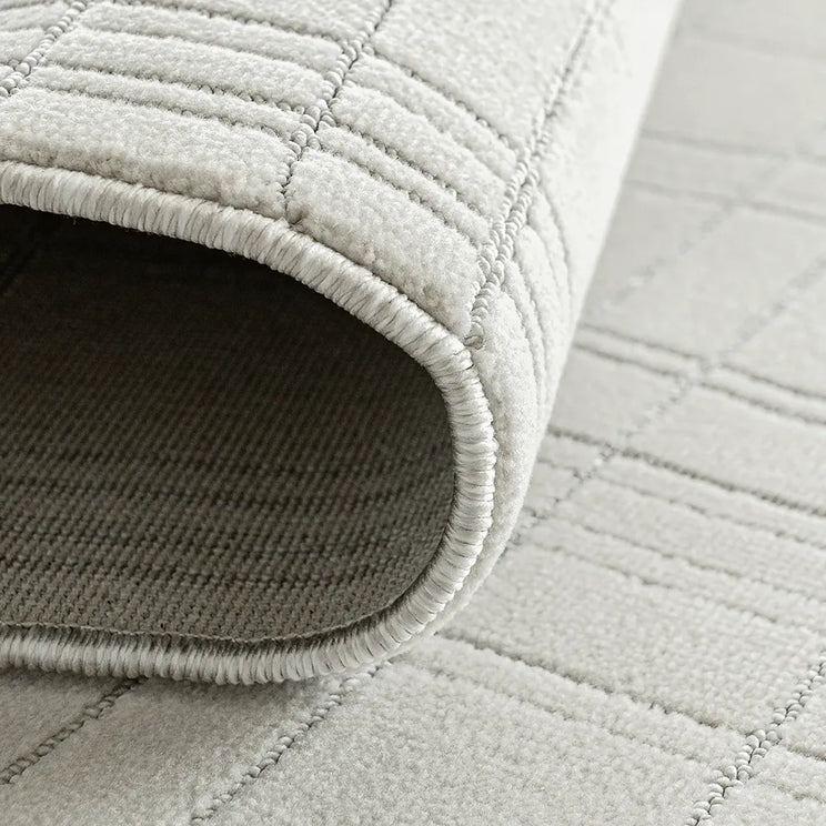 Our Corvin Sandy carpet has a linear design that will pair perfectly with modern furniture. In a palette of pale neutrals, the grid pattern carpet is a premium pick for contemporary homes.