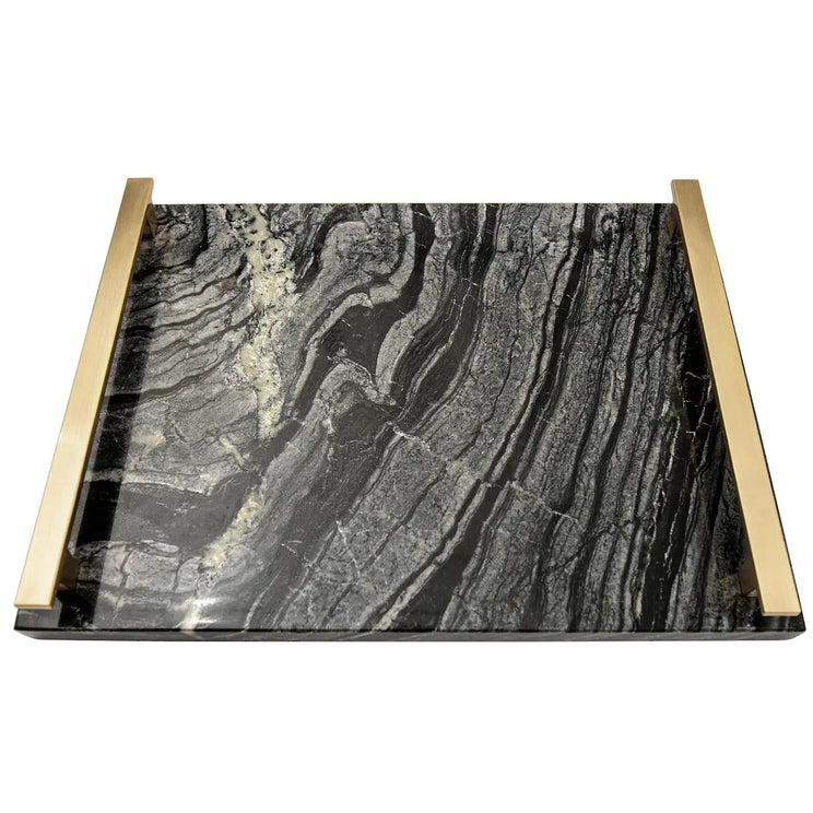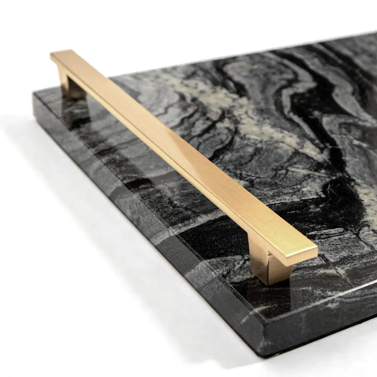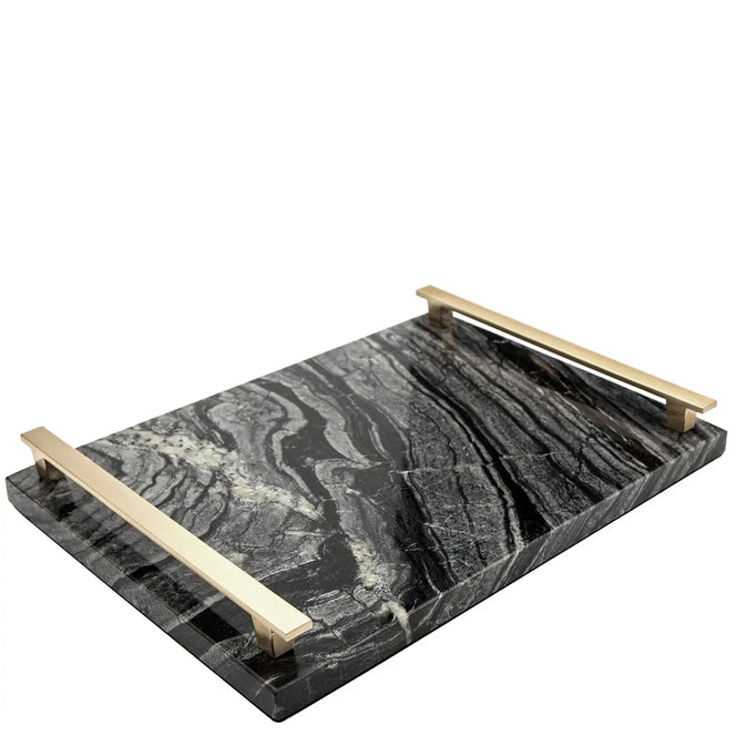 Design: Black and grey marble tray with gold handles