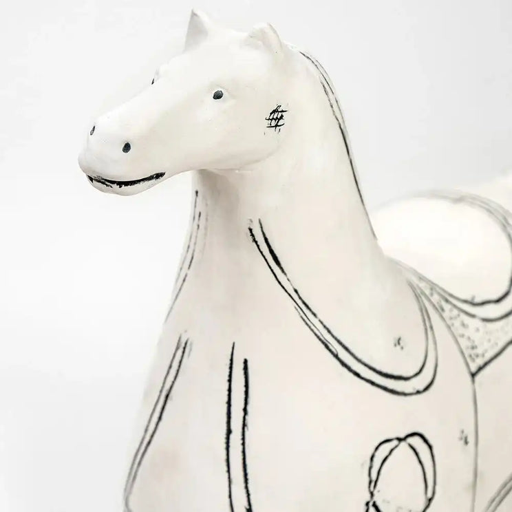 Design: Stylised white ceramic horse figure with black detailing