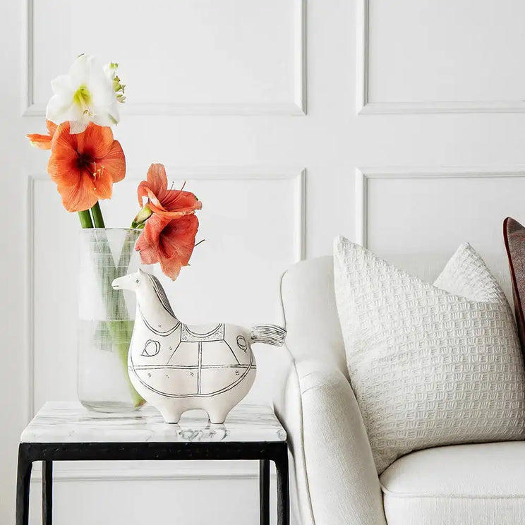 This quirky horse sculpture will add plenty of personality to your living space. The ceramic horse figure has a round silhouette, with contrast black lines marking out its features.
