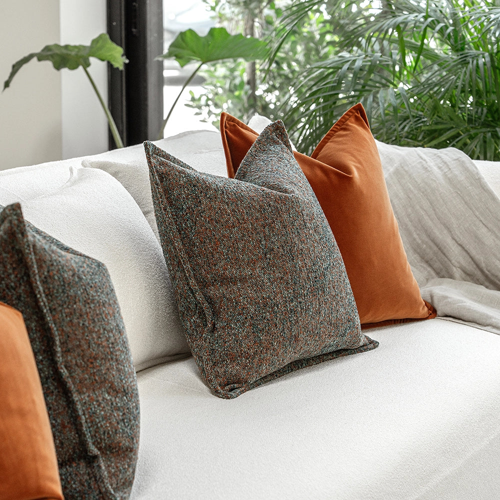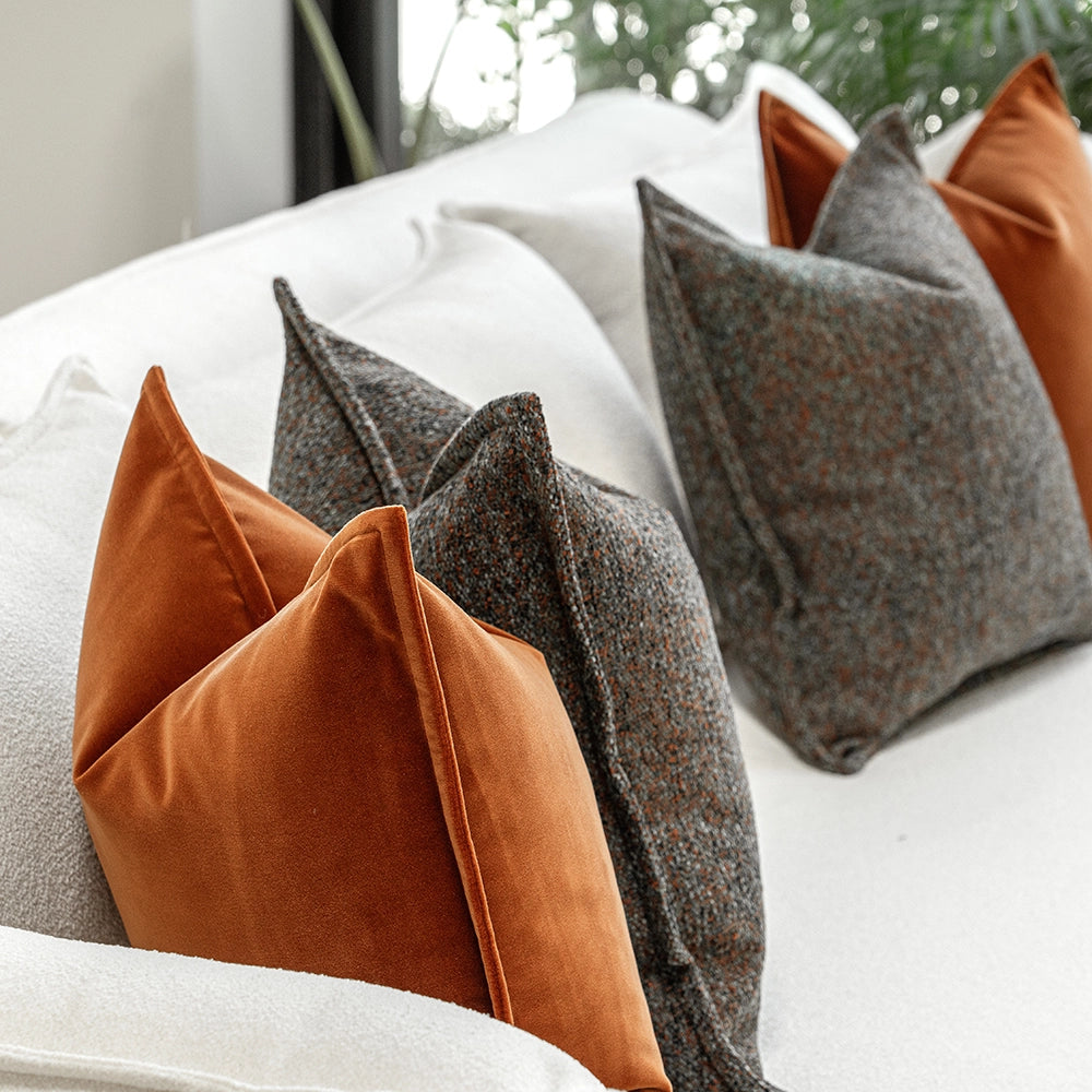 The soft textures of this premium cushion bundle create a luxury feel. Two rust velvet cushions are paired with two melange cushions in coordinating colours to add rich texture to your sofa.