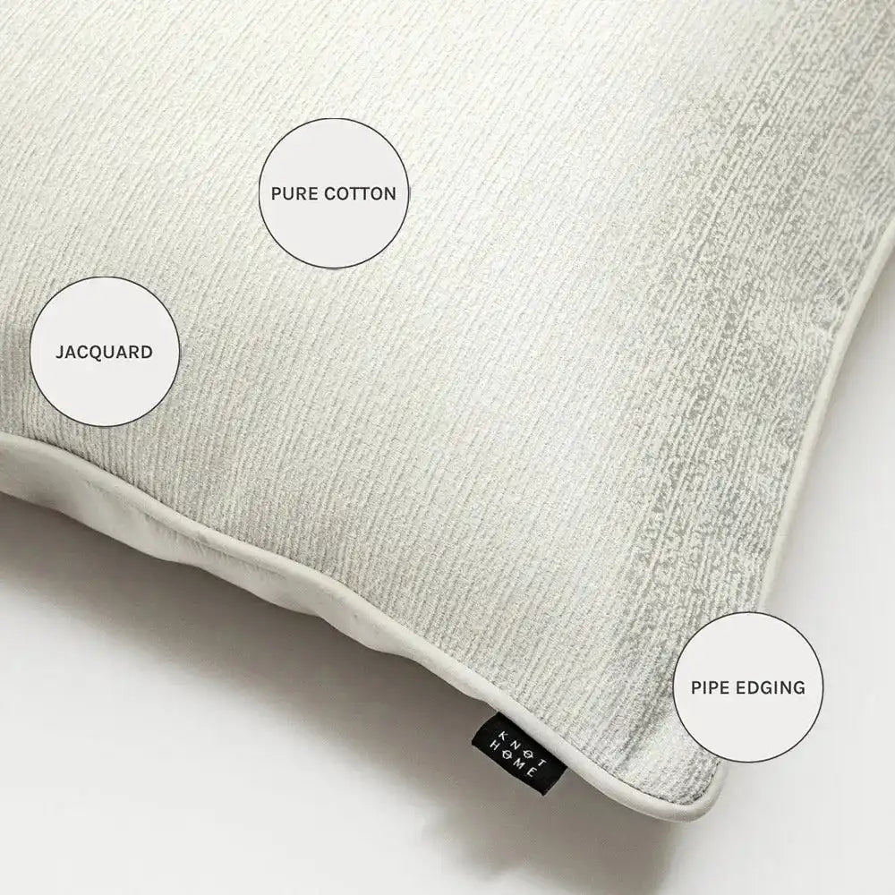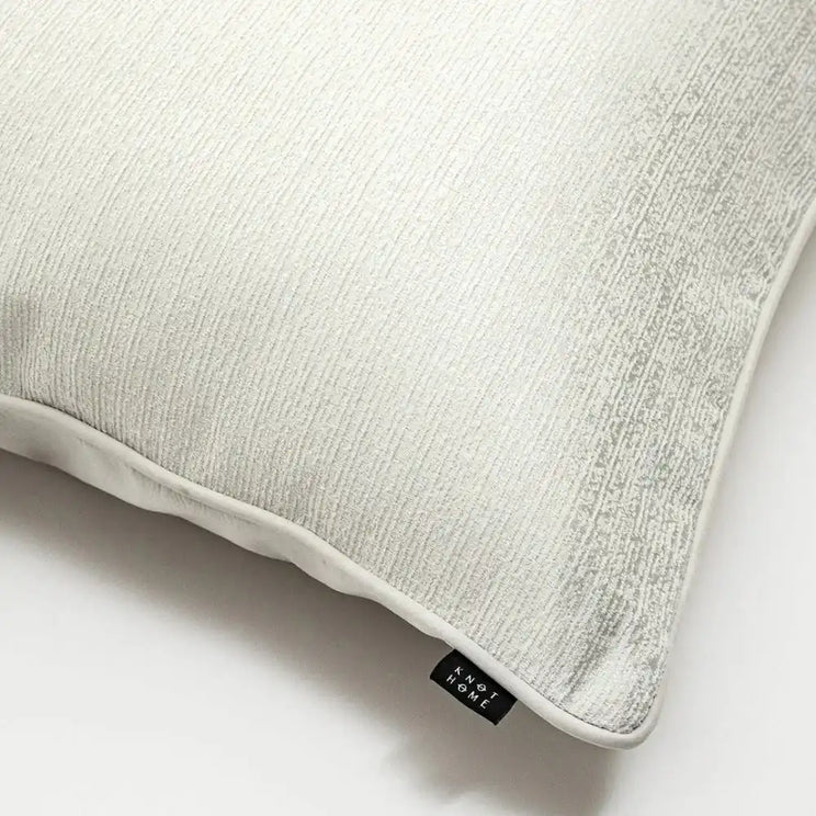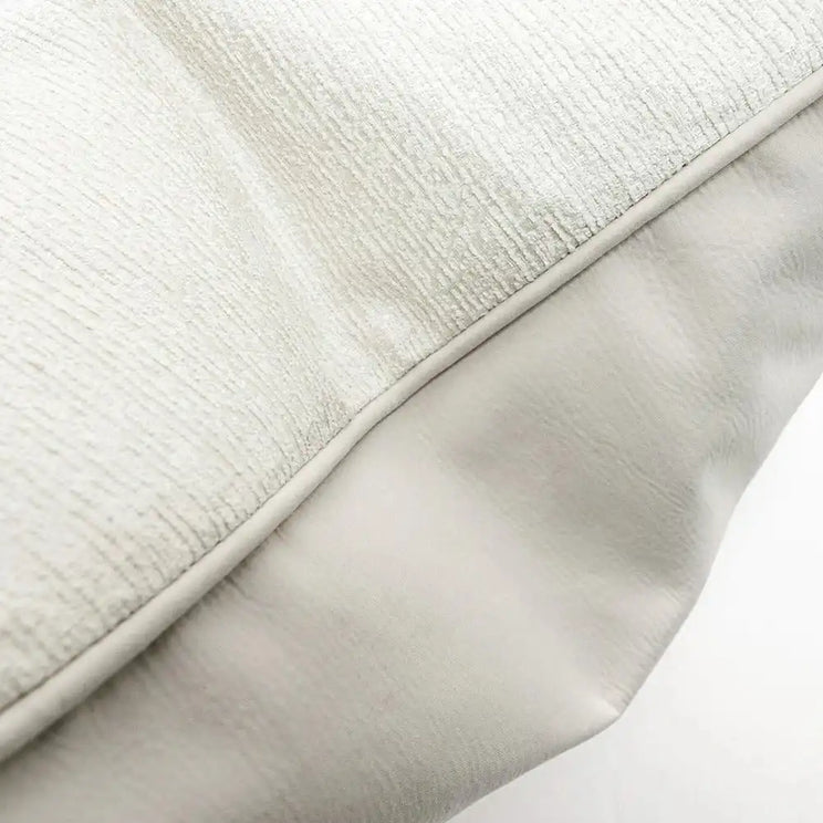 Chic and understated, off-white cushions blend well with any colour scheme. This decorative white cushion features textured lines in soft cotton on the front, and has a faux leather back for contrast.