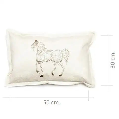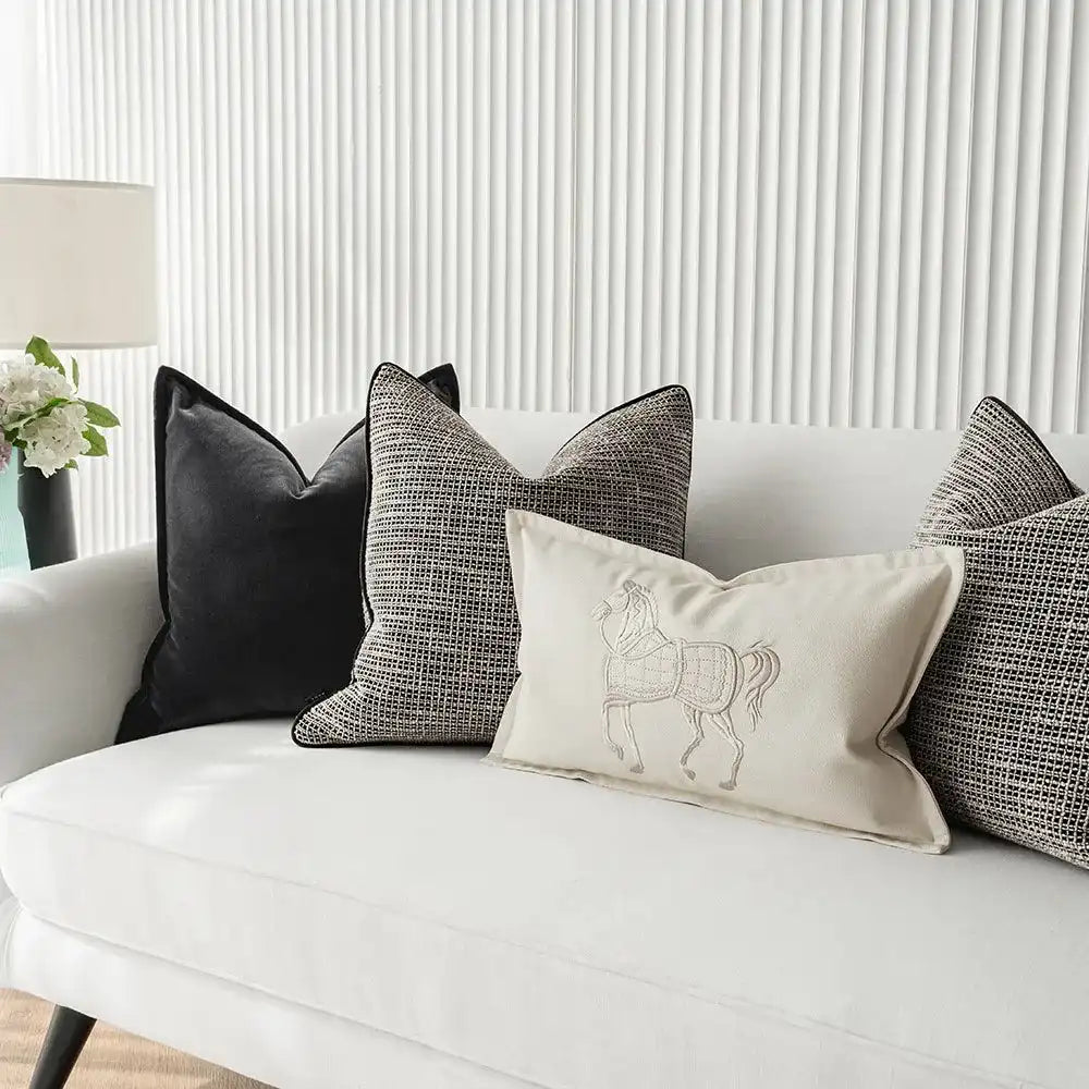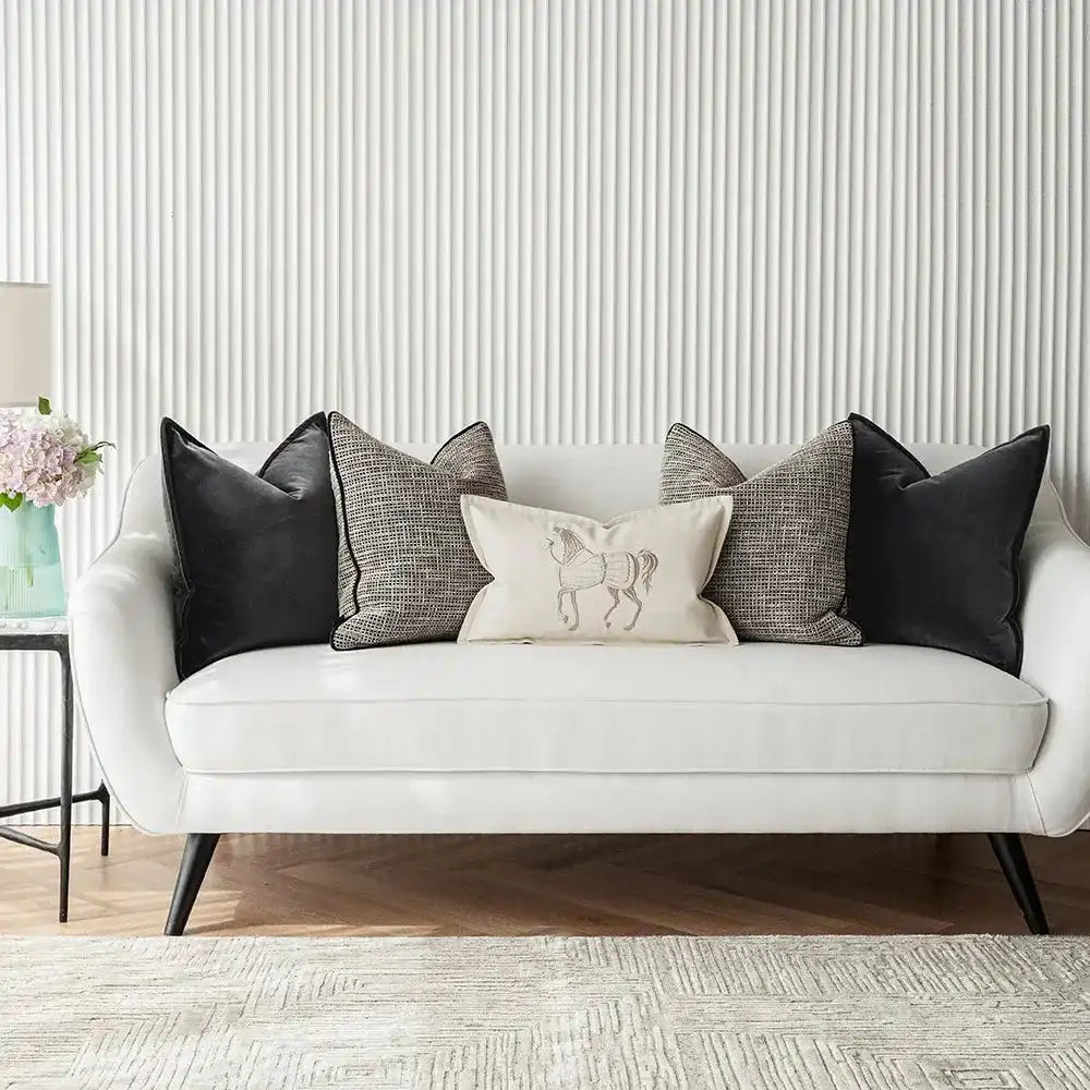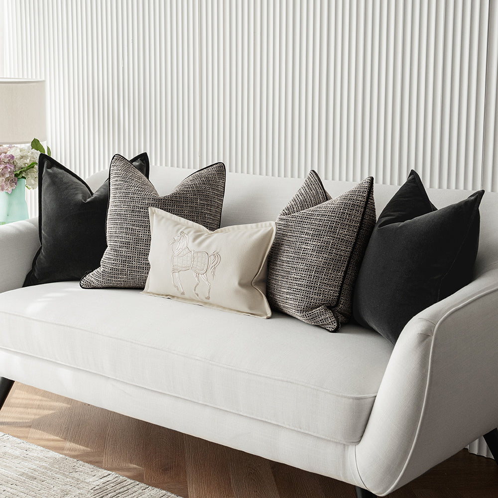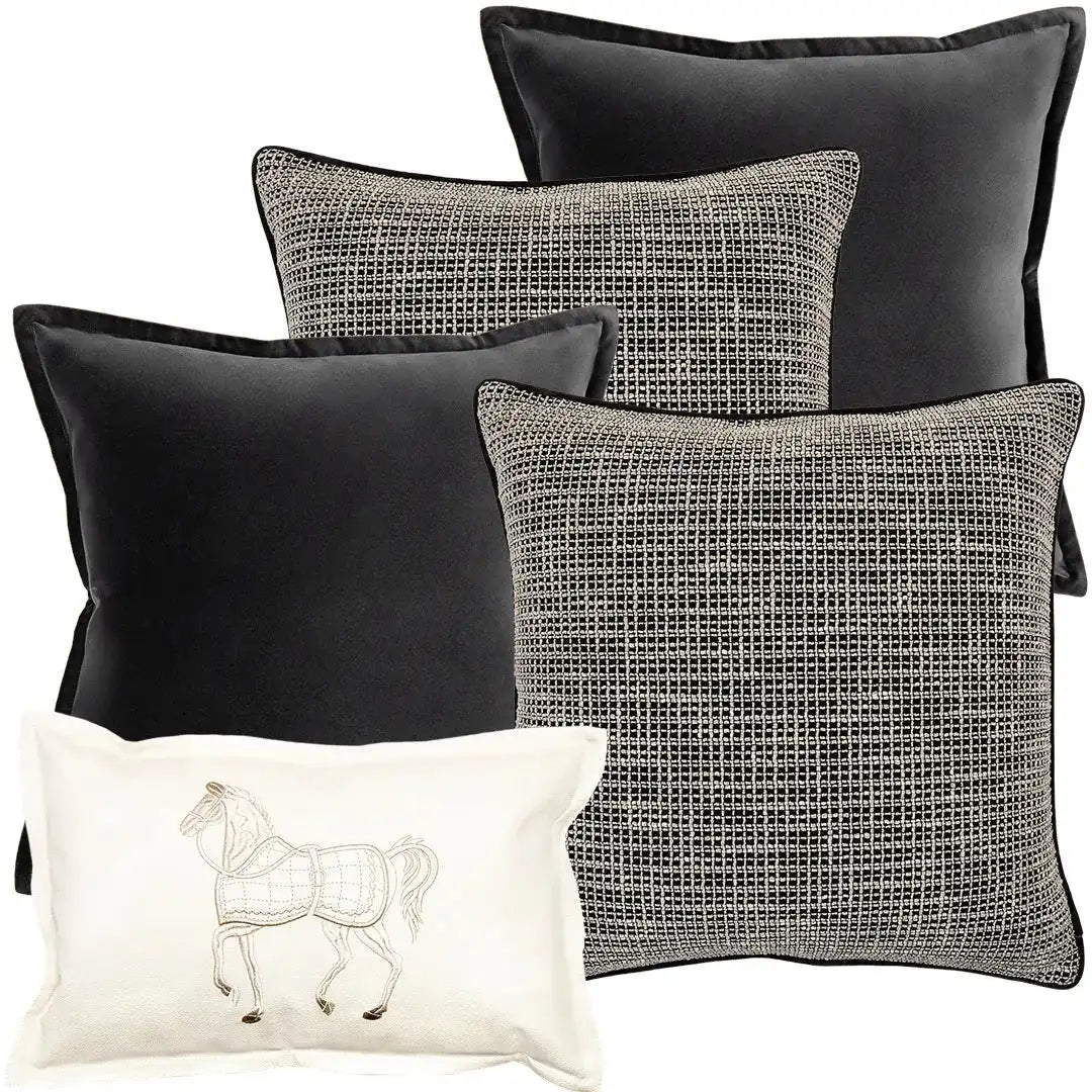 Design: Two velvet cushions, two textured jacquard cushions and a PU horse accent cushion