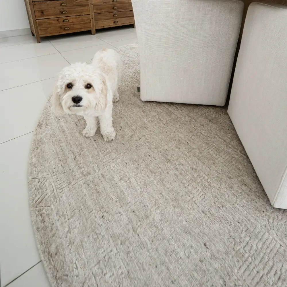 A modern heirloom, this wool-mix rug has an intricately carved pattern.