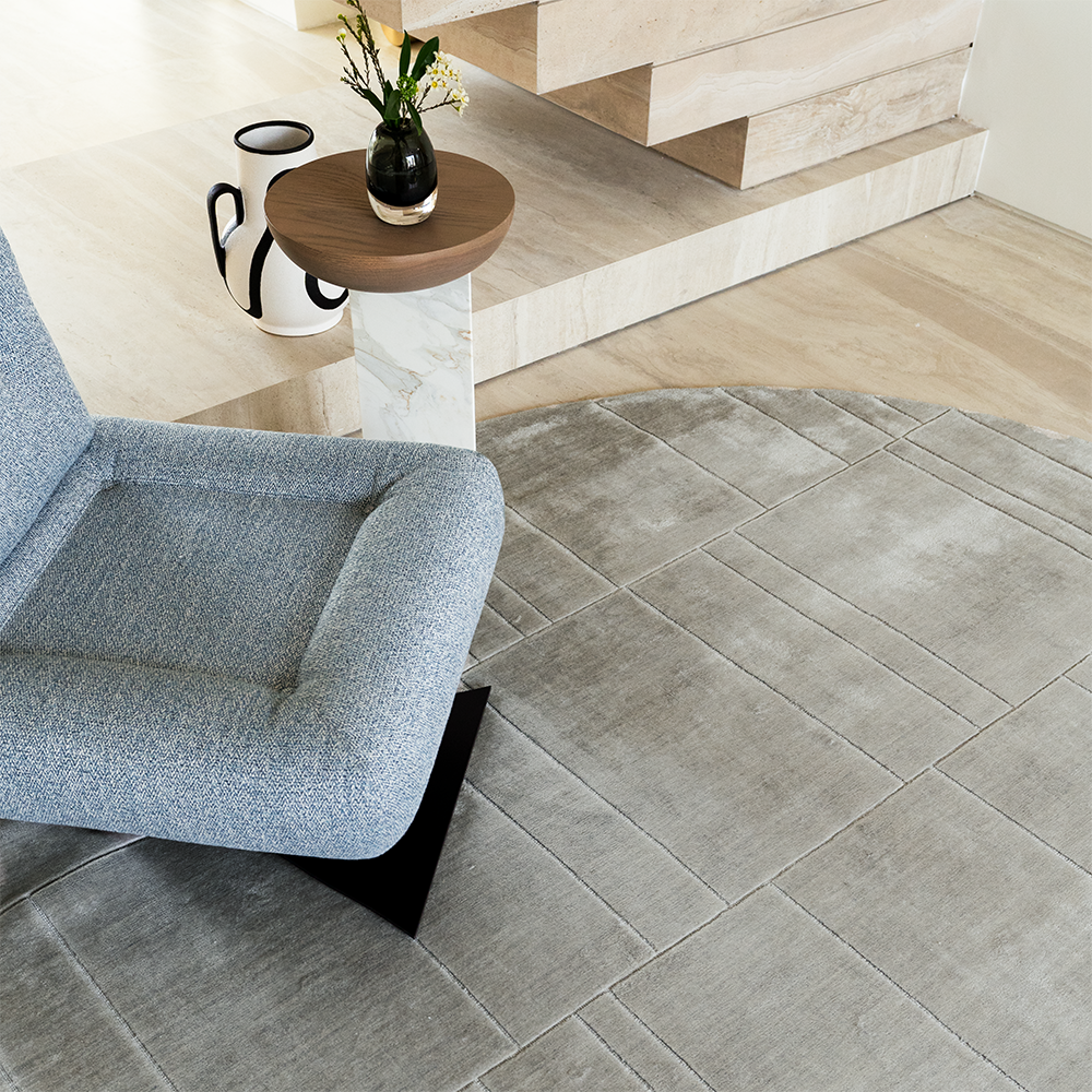 The rectangle pattern has been cut into this geometric rug for textural interest.