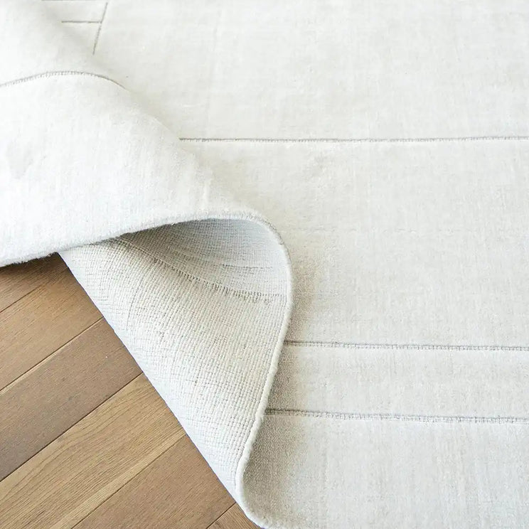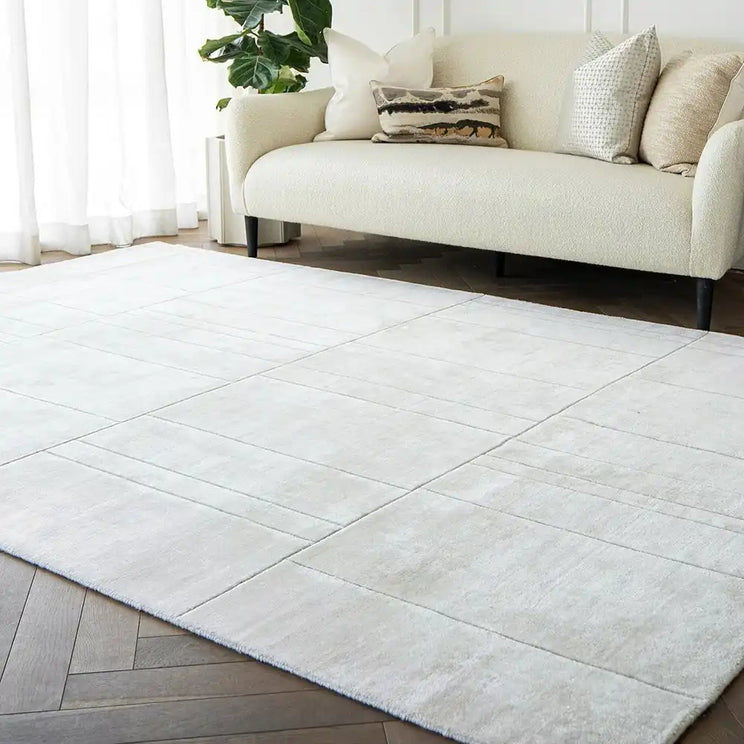 Rectangles are cut into the pile of this geometric rug to create a luxury style for modern interiors.