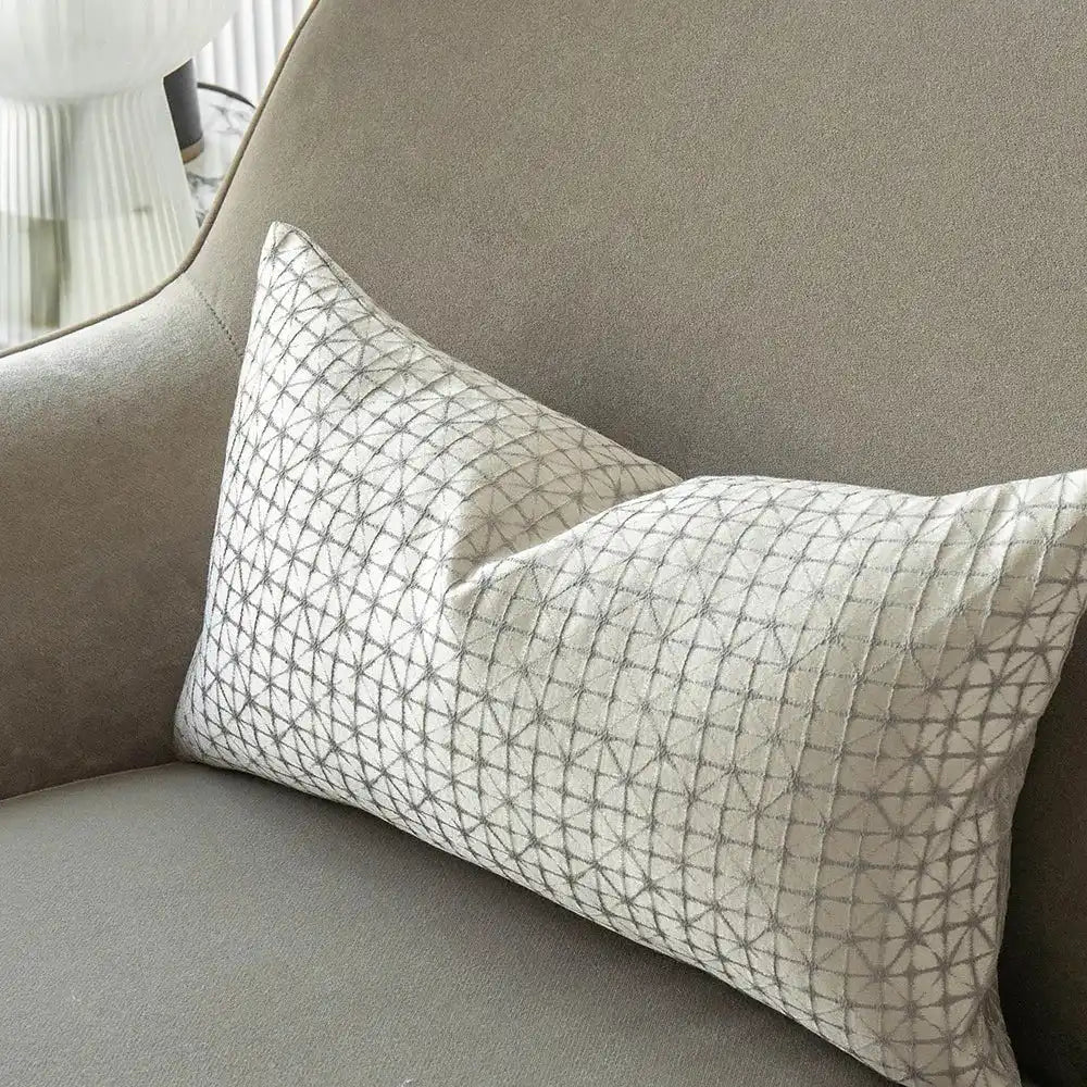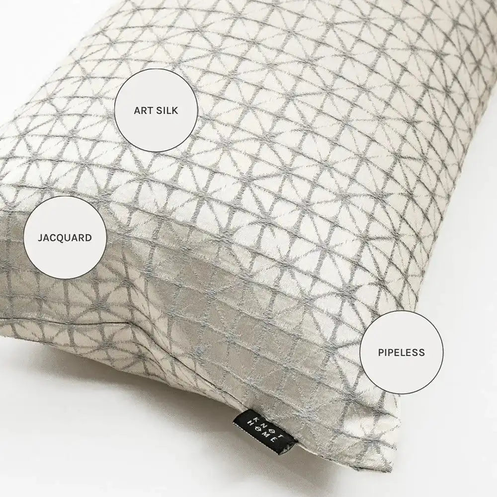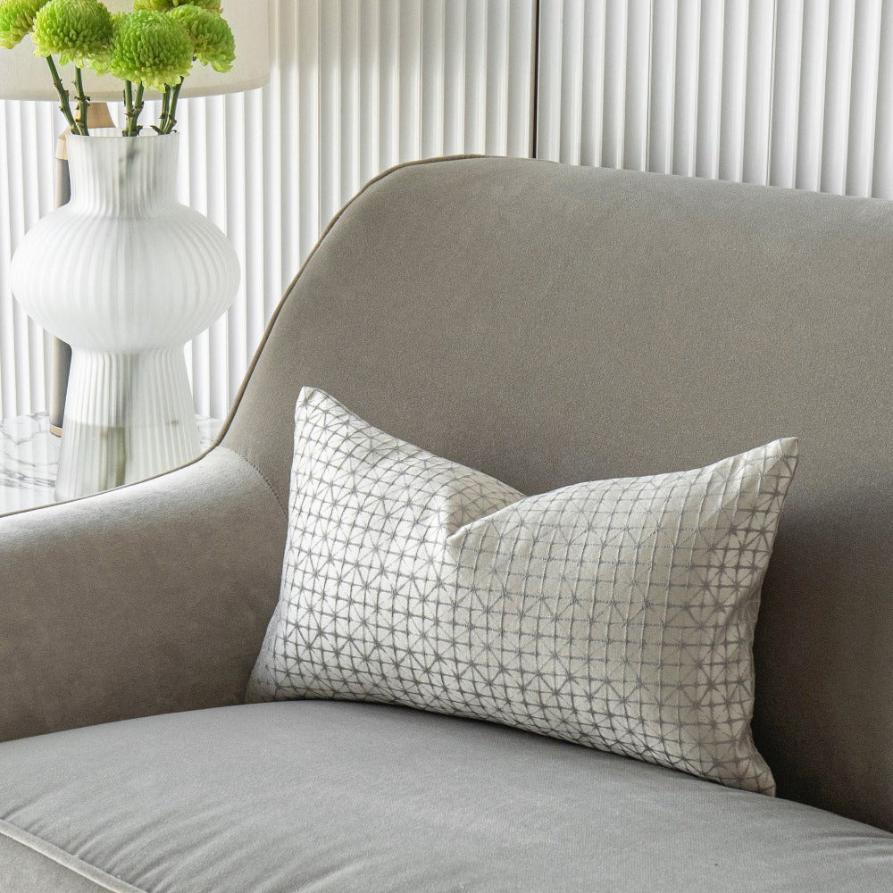 This luxurious cushion is the perfect way to add a subtle sheen to your interior. Our Elmas Klimt II accent cushion comes in pale silver and grey, with a delicate diamond and star pattern all over.