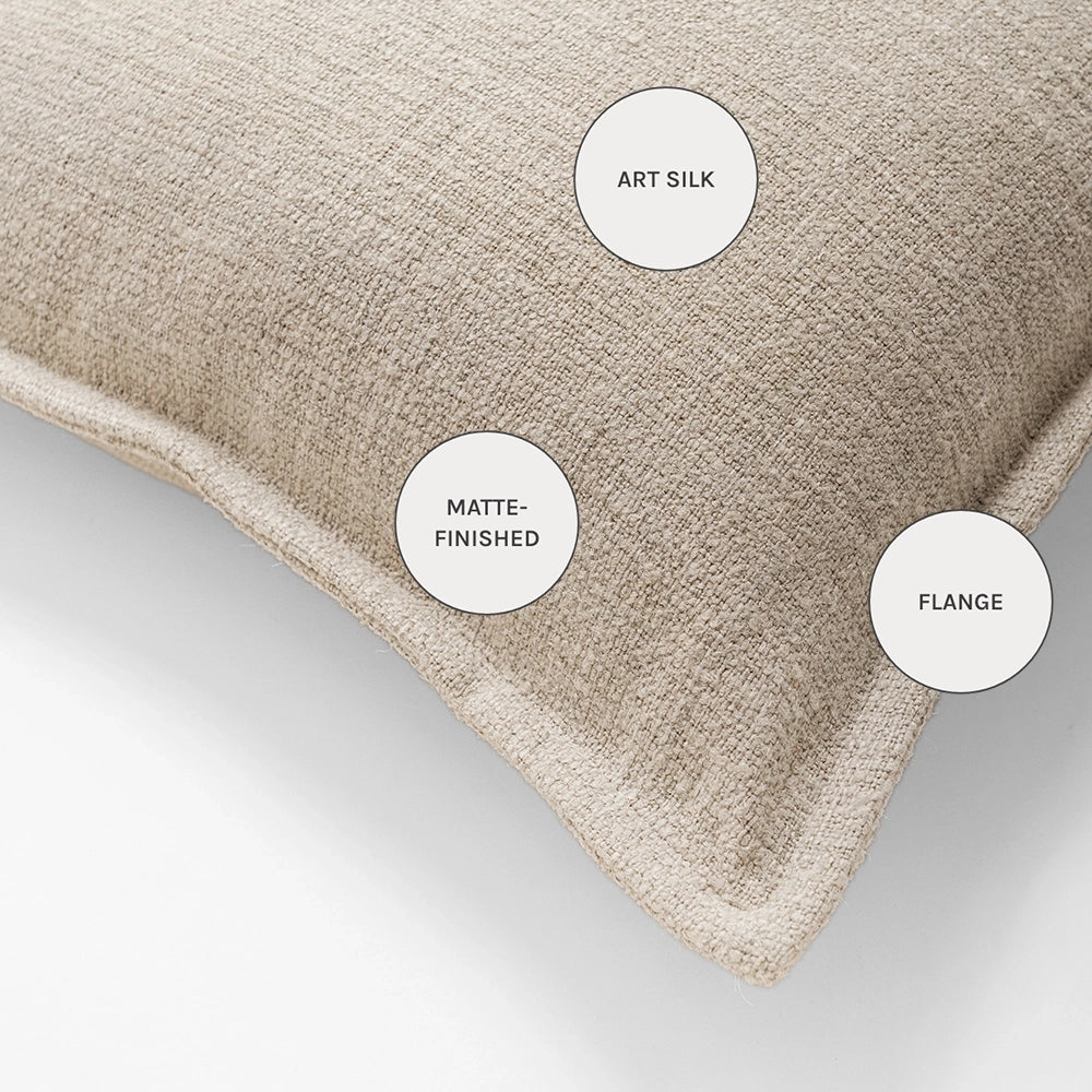 Understated luxury for your living room: this neutral cushion will elevate any sofa. The pale beige cushion is made from art silk and has a flange detail all the way around for a designer touch.