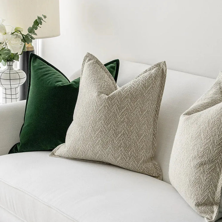 Design: Two dark green velvet cushions and two zigzag cushions with contrast back