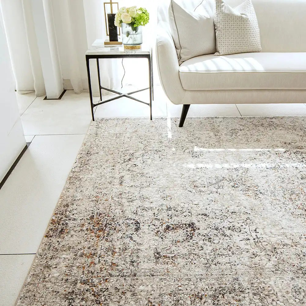 In grey and beige, this faded rug from our Ethan range has the ghost of a traditional pattern to give it plenty of vintage charm.